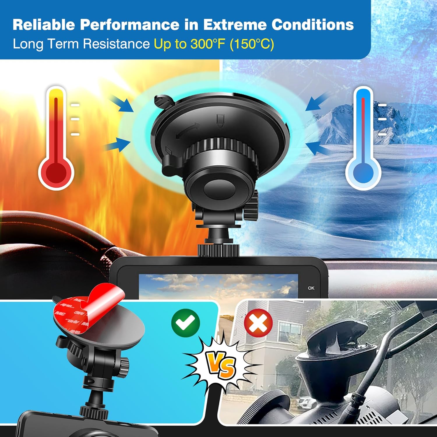 - Versatile Mounting Solution – Perfect for replacing the original tape on dash cam mounts or converting a broken suction cup into a reliable adhesive mount, providing a strong and secure alternative to suction cups.