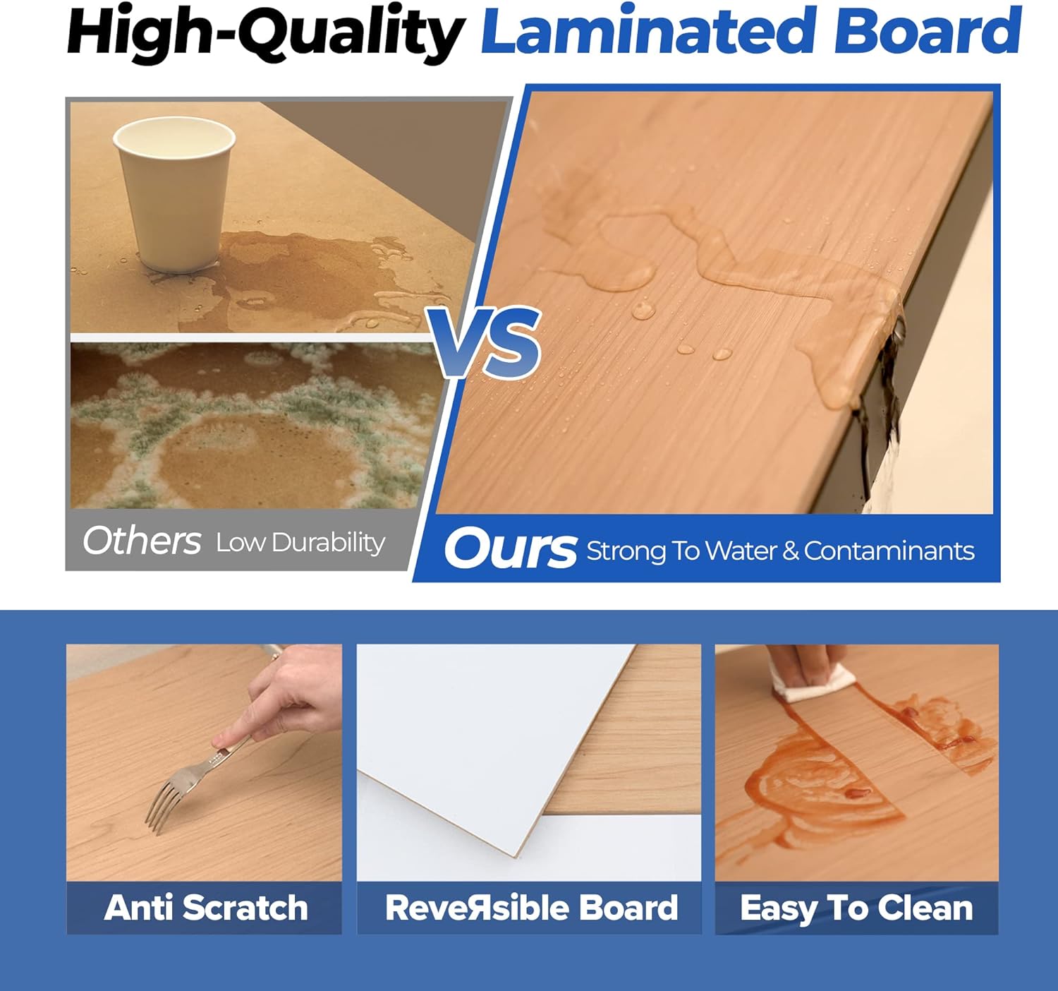 - Superior Upgrade Laminated Board - Say goodbye to worrying about water damage and humidity and flimsy shelves that warp or split. This is not only designed with a much thicker laminated board for durability to withstand water damage and can be used in areas with high humidity but also looks great and feels soft to the touch. Plus, it's easy to manage - if any contaminants get on the surface, simply remove them without any pesky stains or seepage.