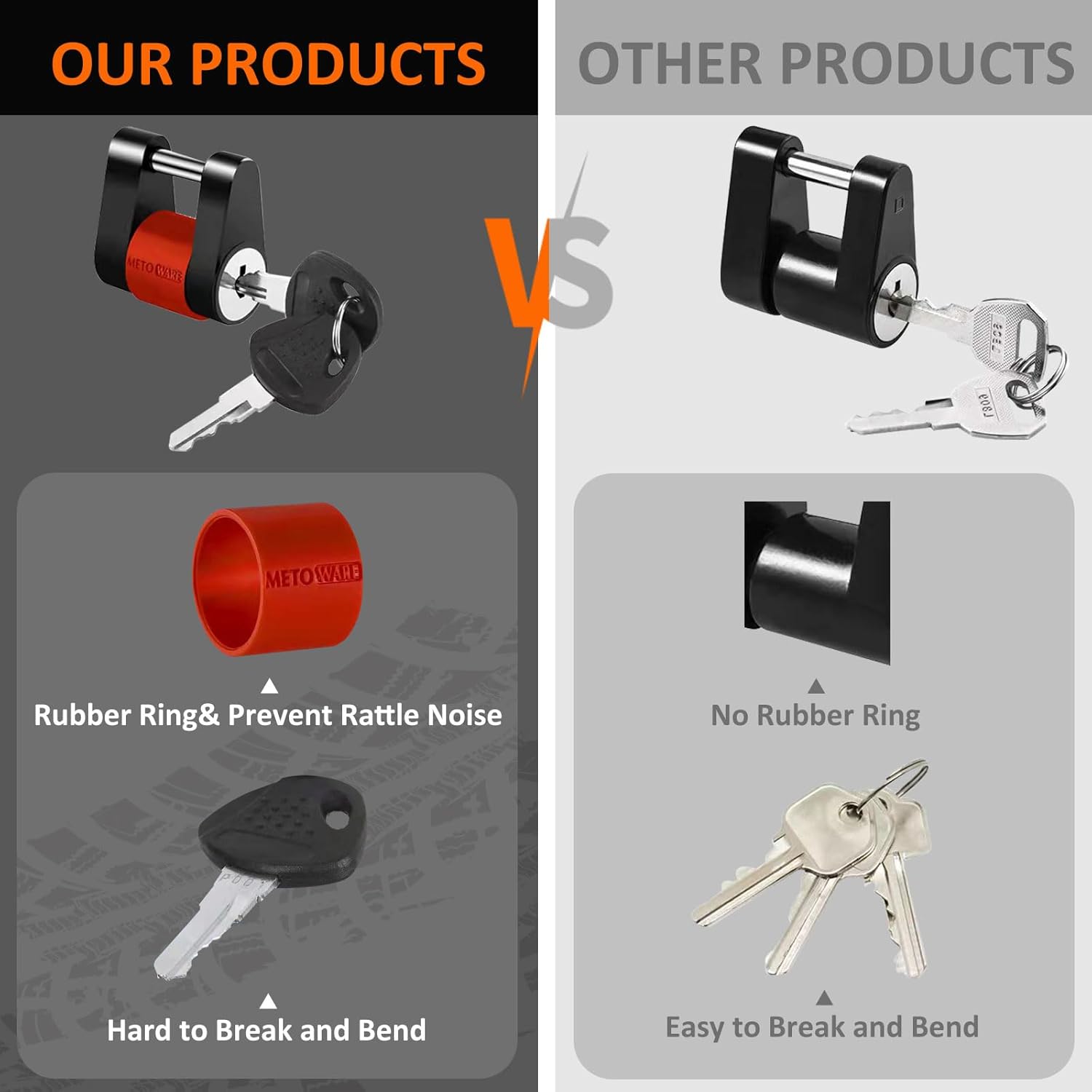 METOWARE Trailer Tongue Coupler Lock, 1/4" Dia with 3/4" Span Trailer Tongue Lock, Heavy-Duty Steel Trailer Coupler Lock for Tow Boat RV Truck Car's Coupler with Anti-Rattle Rubber Ring (1 Pack)