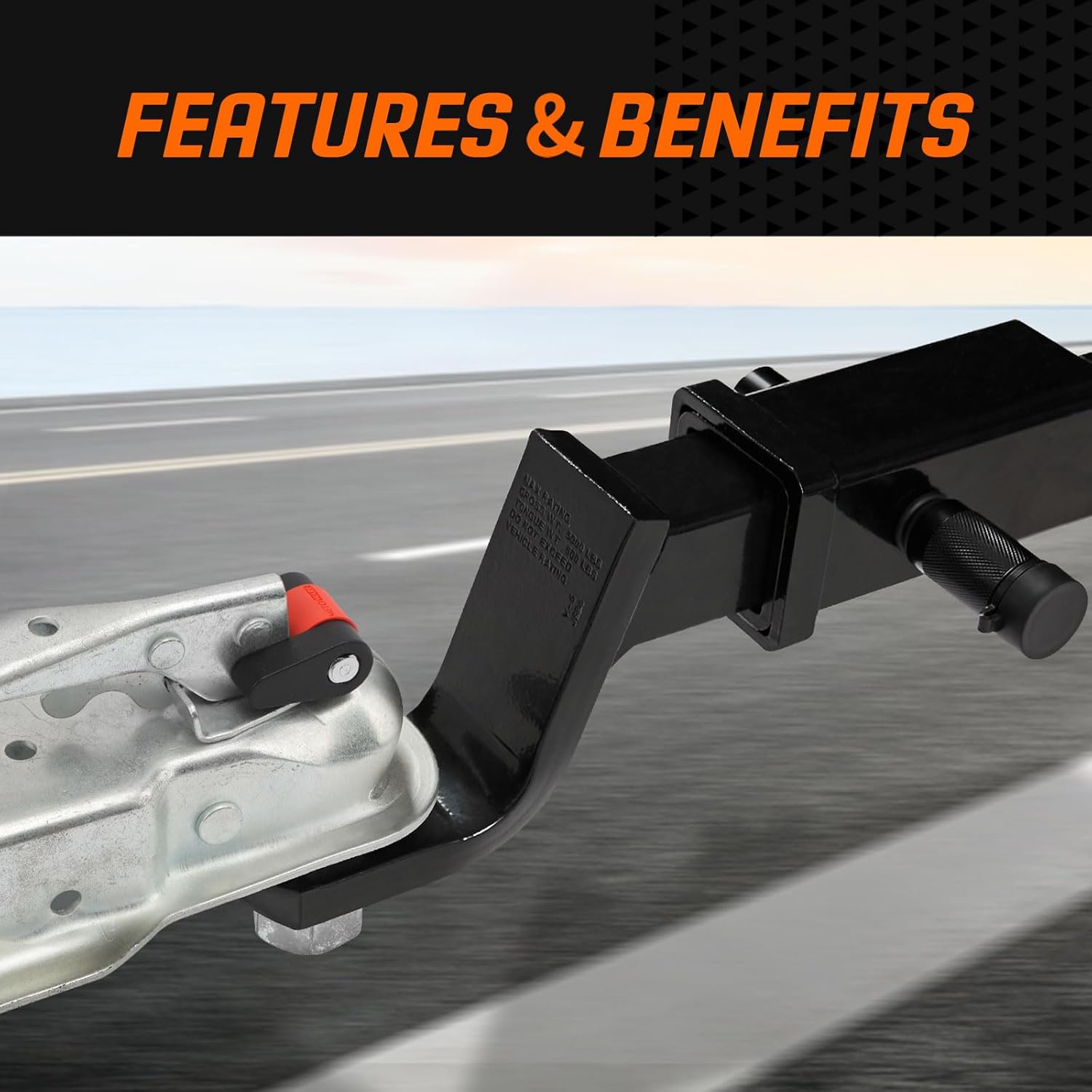 - 【EASY TO USE】- The trailer tongue lock is easy to operate with screw-type locking action -- just turn the key 5-7 times to open or lock, save your time and effort. The trailer coupler lock can be installed quickly and easily so that you can hoop up and head out right away.
