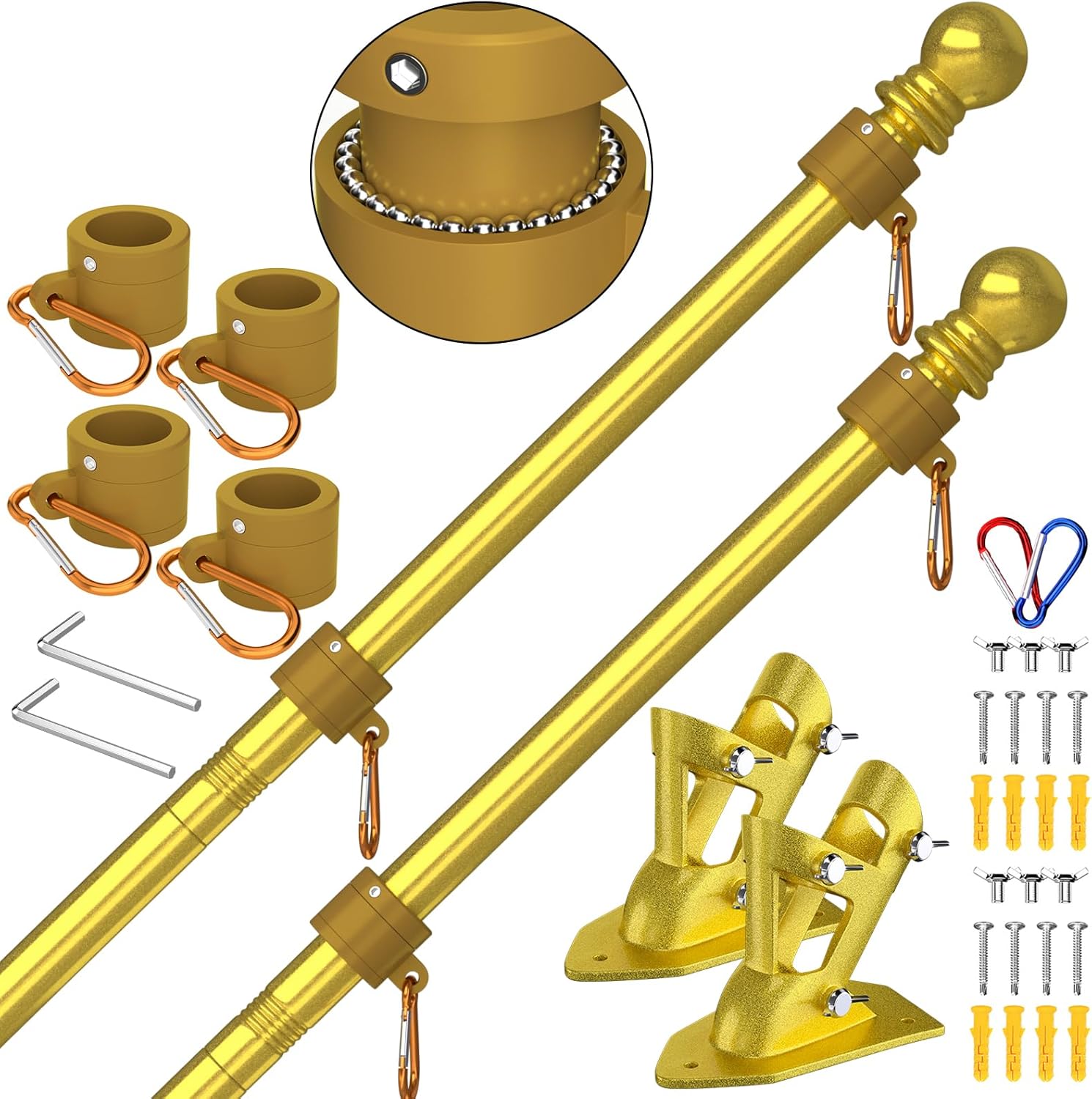 ZMTECH Flag Pole - Upgraded Bracket, (2 Packs) 6 FT Stainless Steel Flag Poles for Outside House, Residential or Commerical, Tangle Free Flag Pole Kit for American Flag (Without Flag, Gold)