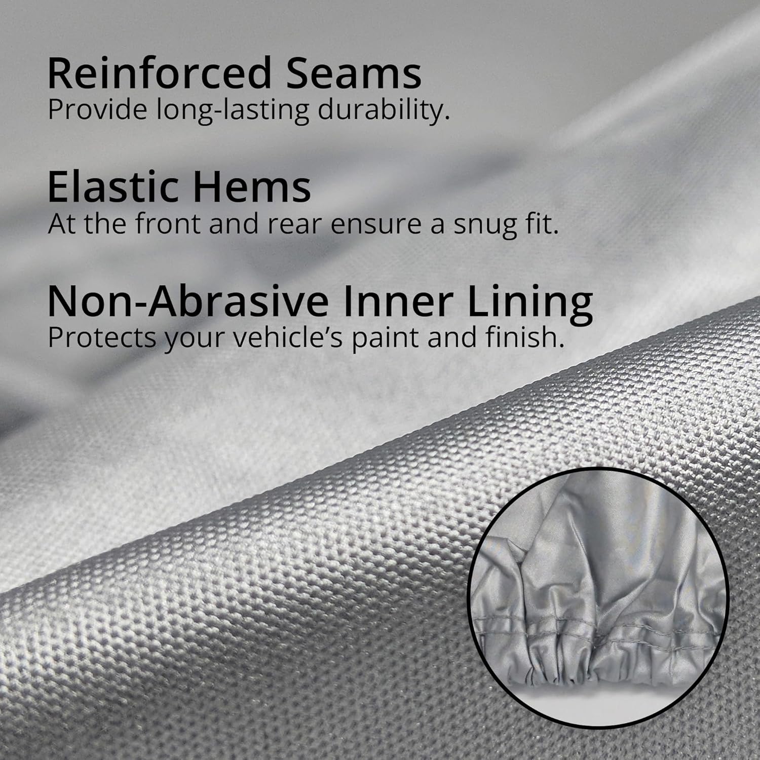 - A PERFECT FIT: Our front and rear elastic hems ensure a secured fit for any classic or new sedan, convertible, truck, SUV, van, coupe, automatic, luxury sports car or hatchback. No matter your make and model, we have your car covered with our wide variety of perfect-fit options.