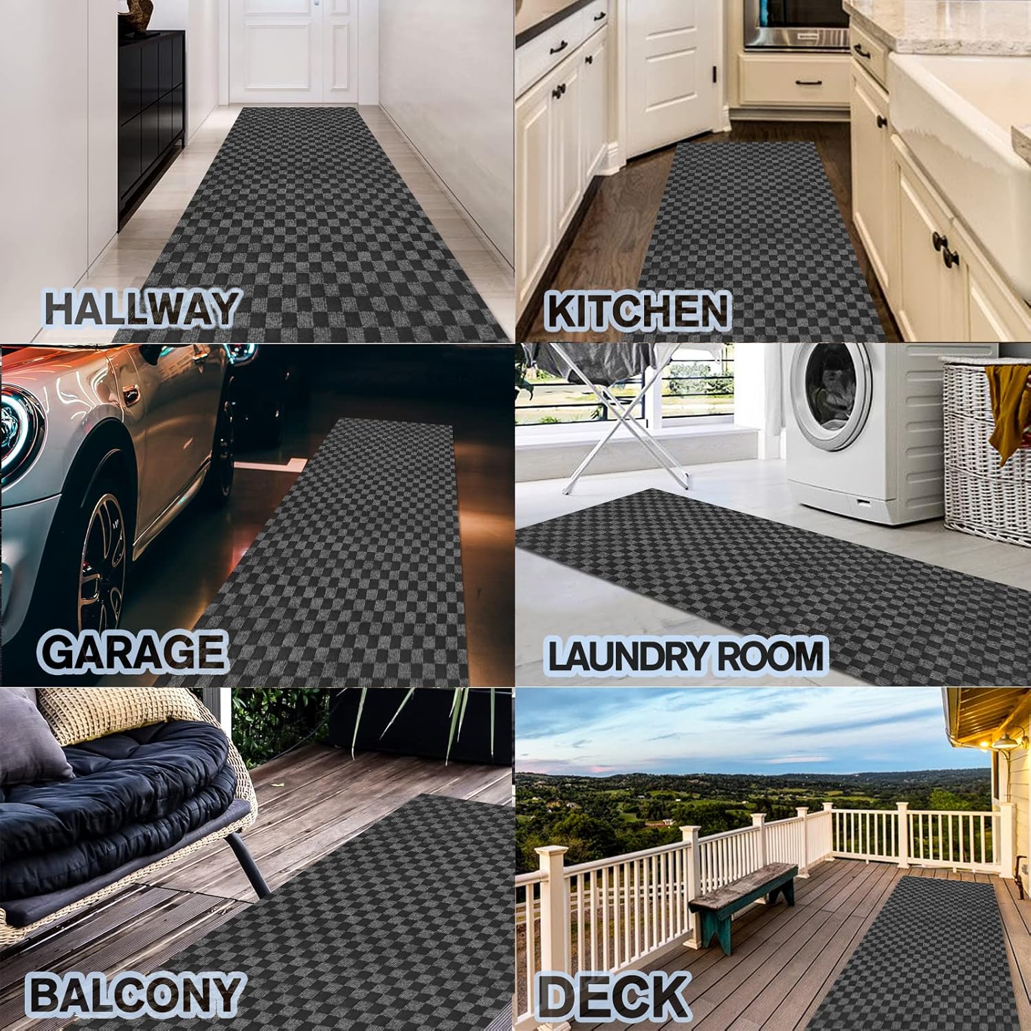 Custom Size Backed Non-Slip Area Rugs Runner, Easy Clean, Waterproof Runner Rugs for Hallway Entryway, Kitchen, Laundry, 2FT x 19FT, Gray Checkered