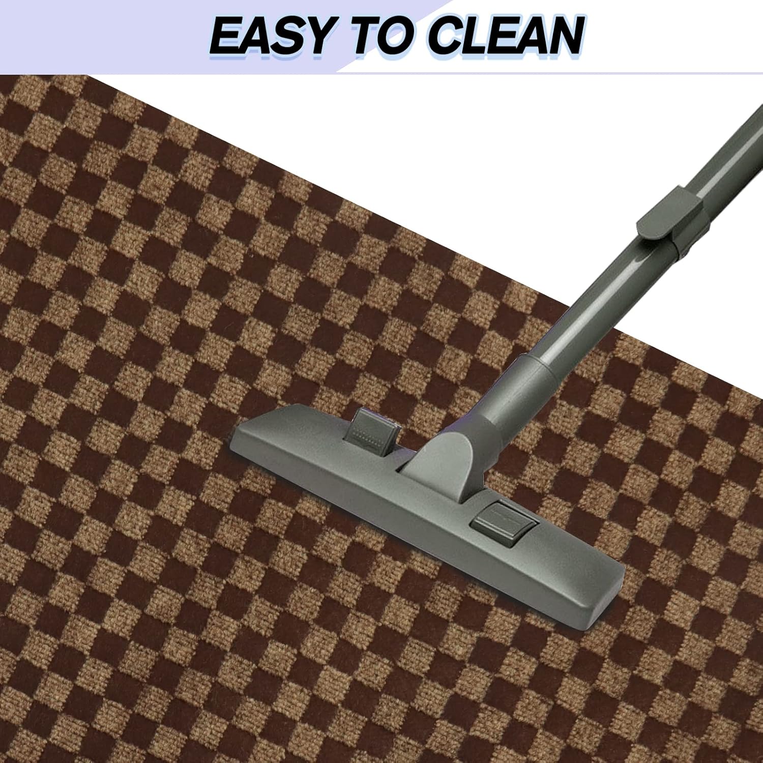 Custom Size Backed Non-Slip Area Rugs Runner, Easy Clean, Waterproof Runner Rugs for Hallway Entryway, Kitchen, Laundry, 2FT x 63FT, Brown Checkered