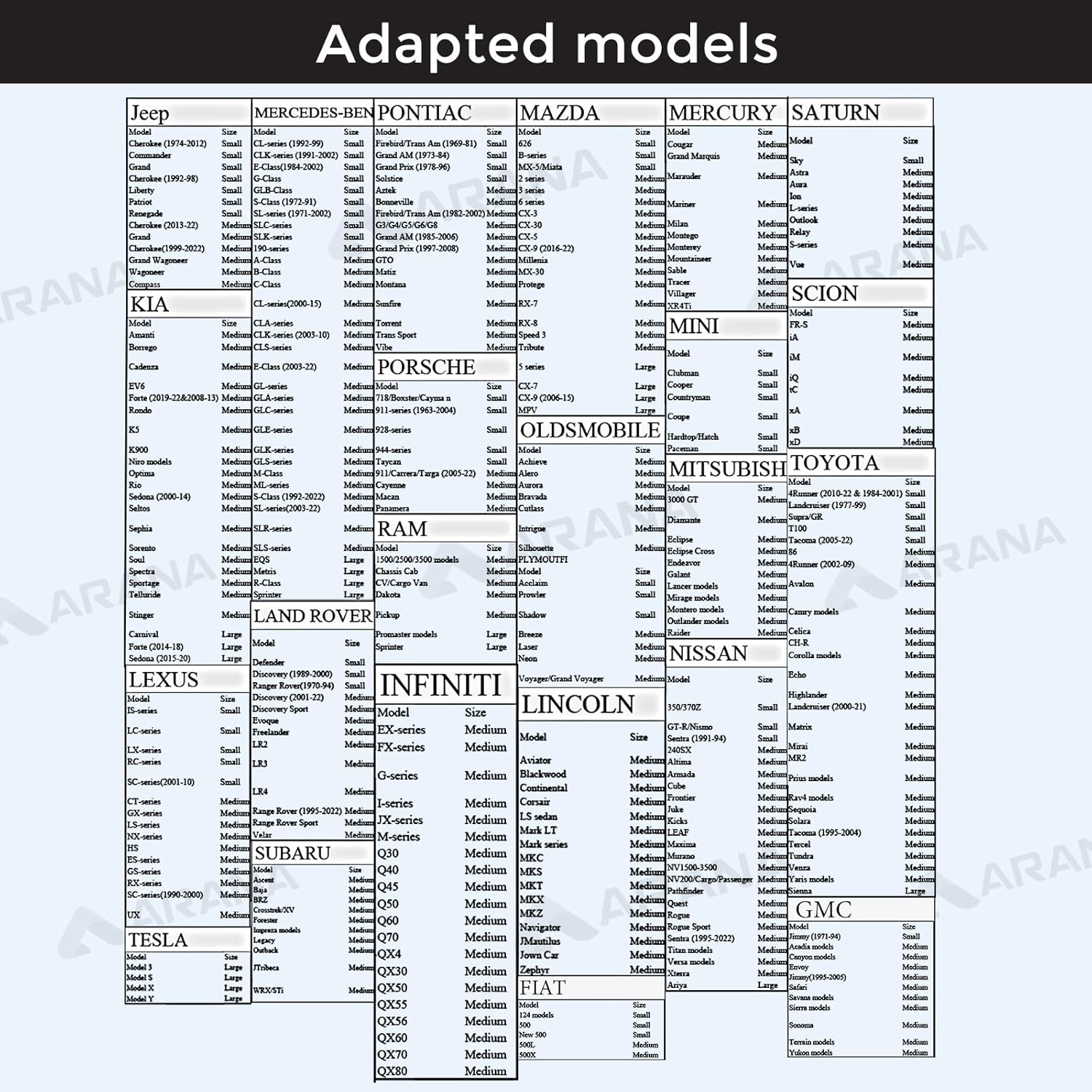 - ARANA Promise: With 180 days of product support, ARANA ensures a perfect fit for your vehicle. Use the size chart to choose the right one, and don't hesitate to reach out for any questions, let's make this summer hassle-free