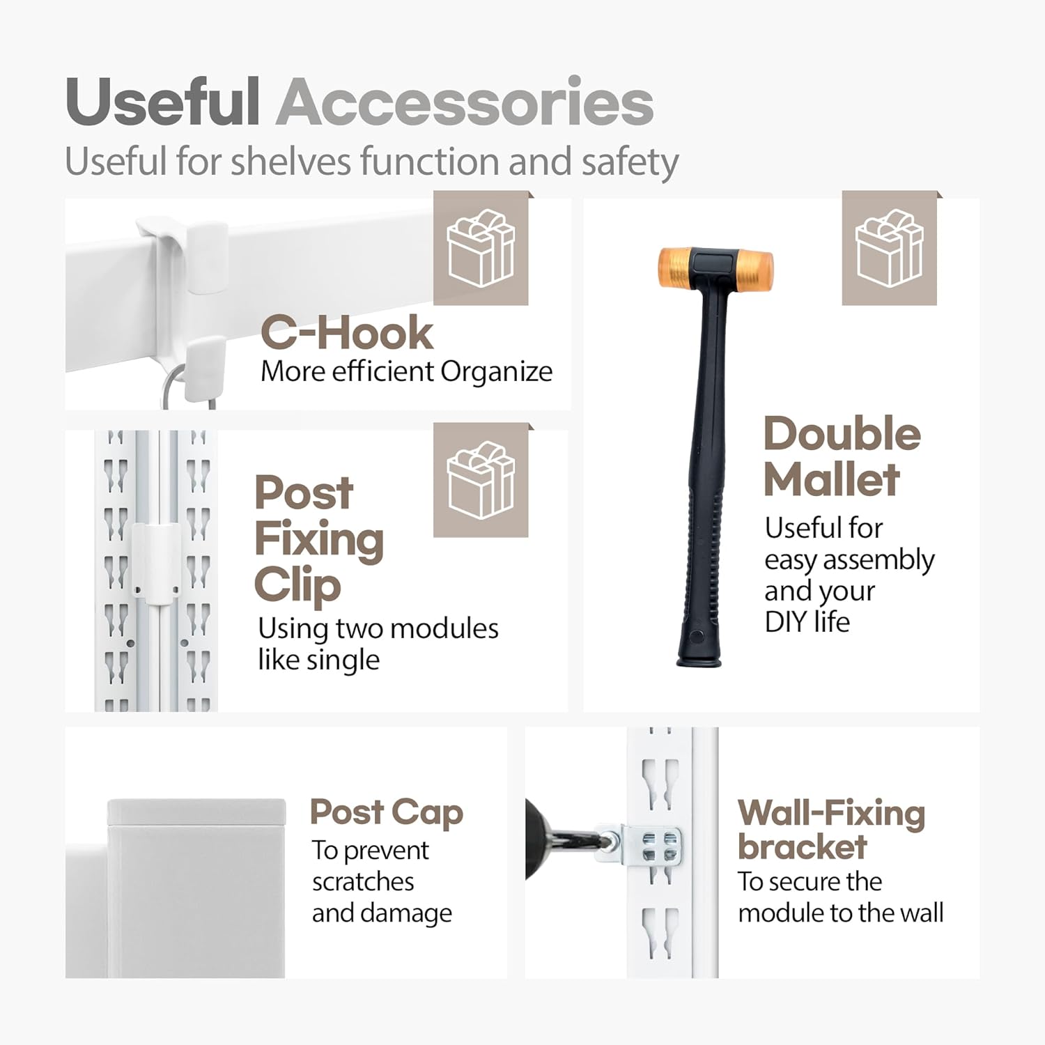 - IDEAL & PRACTICAL HOME DECORATION SHELVING - As applied posh white matte color and smooth secret hole design, it creates modernity and enhances the home interior effect. You can choose the wood pattern board that can use both sides (Wood Grain or White Pattern) freely to suit the mood of your home by turning upside down easily. It is made of thick Eco-friendly overlaid coating boards, so you don't need to paint them to avoid moisture or use shelf liner to prevent falling out.
