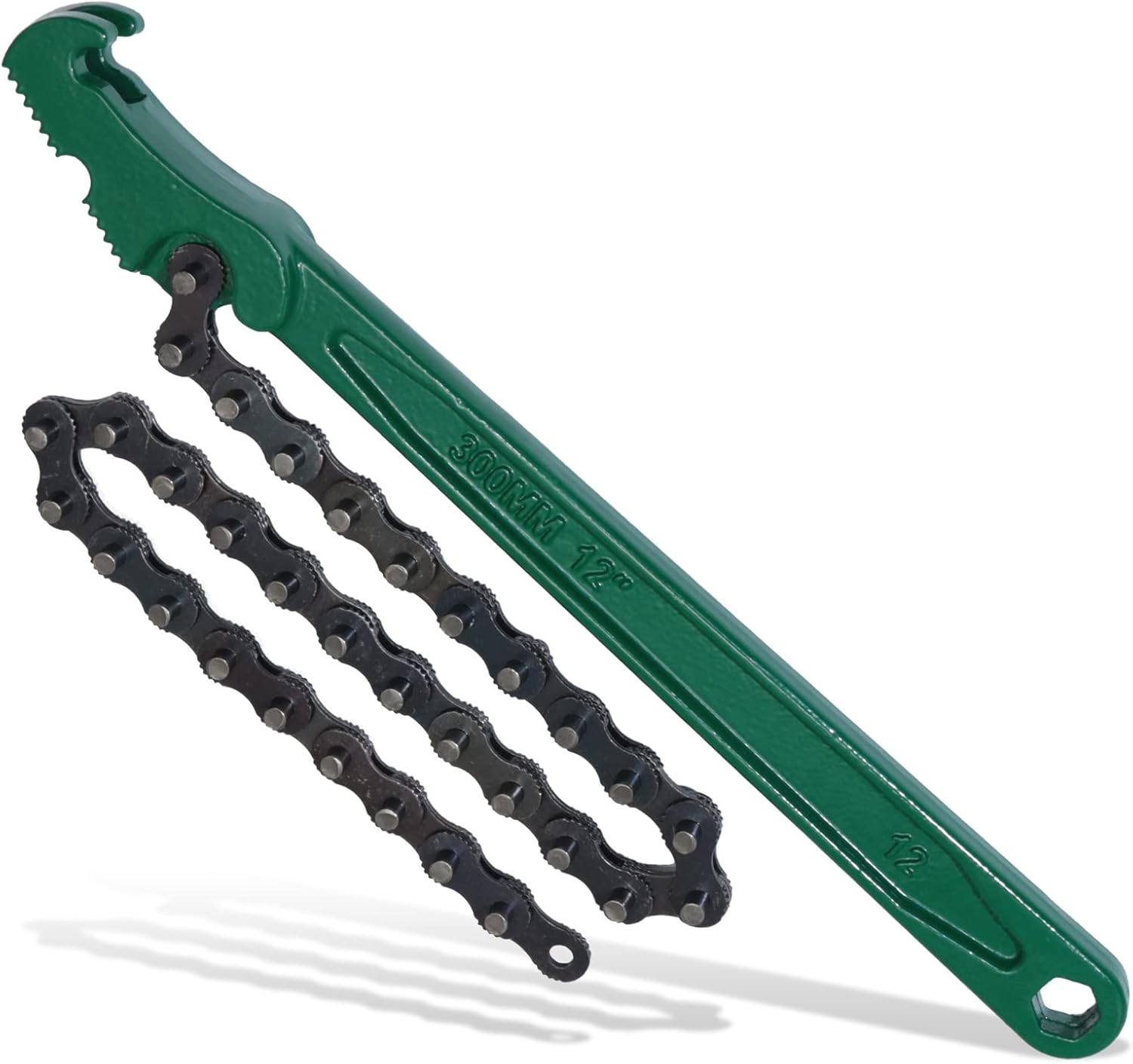 - 【Chain Wrench Size】- Chain Length: 20in/515mm; Handle Length: 12in/300mm. Fits 1.5 inch to 6 inch diameter.