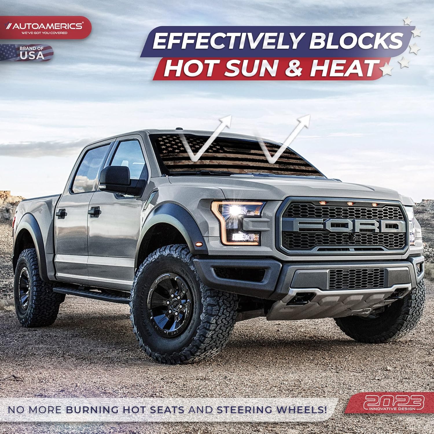 - Market-leading sun protection with an eye-catching American flag design. The new Autoamerics 1 piece USA windshield sunshades combines unbeatable sun reflecting and heat blocking capabilities. We achieve our market-leading protective performance by combining the finest reflective materials and innovative design to reflect the most scorching hot UV rays and heat.