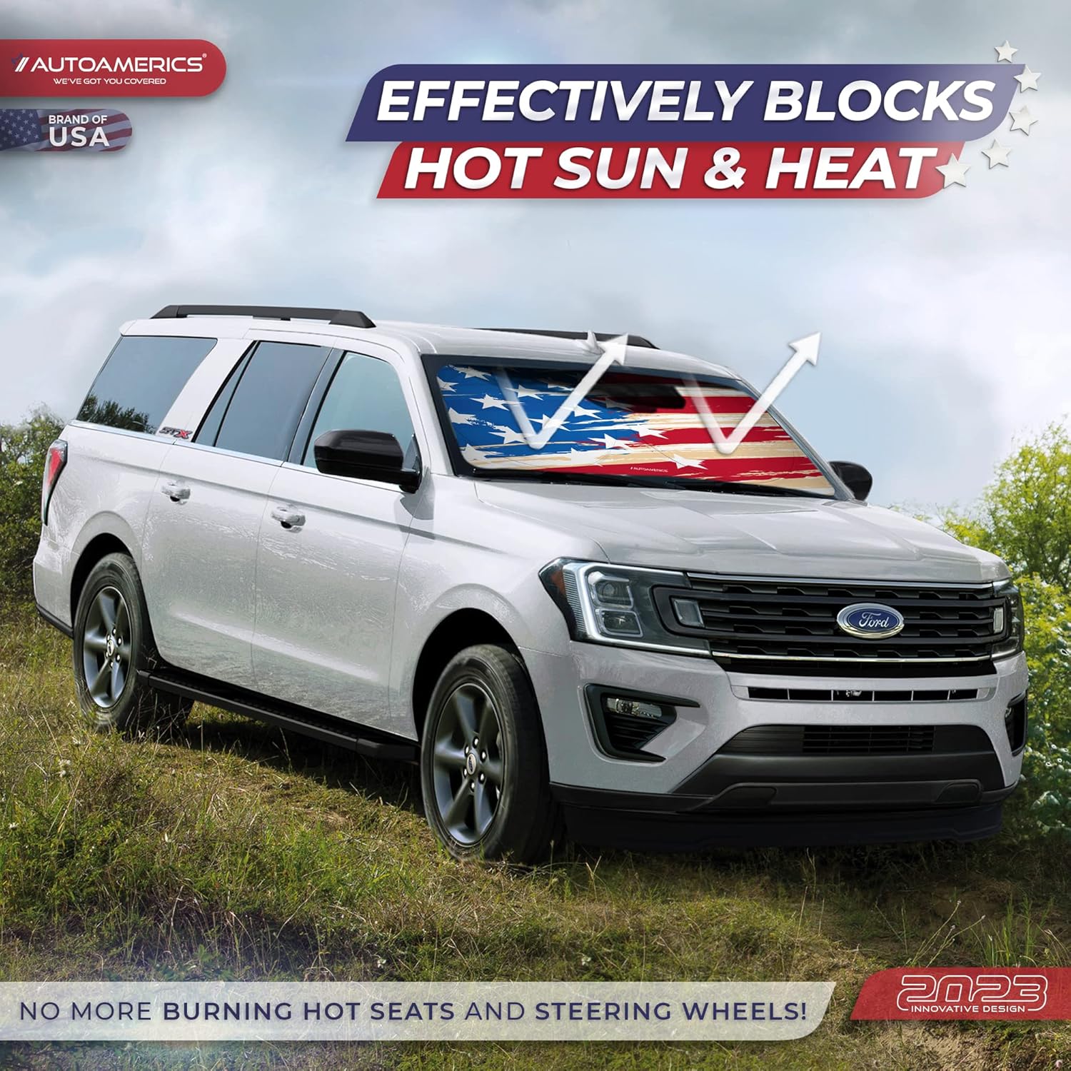 - Market-leading sun protection with an eye-catching American flag design. The new Autoamerics 1 piece USA windshield sunshades combines unbeatable sun reflecting and heat blocking capabilities. We achieve our market-leading protective performance by combining the finest reflective materials and innovative design to reflect the most scorching hot UV rays and heat.