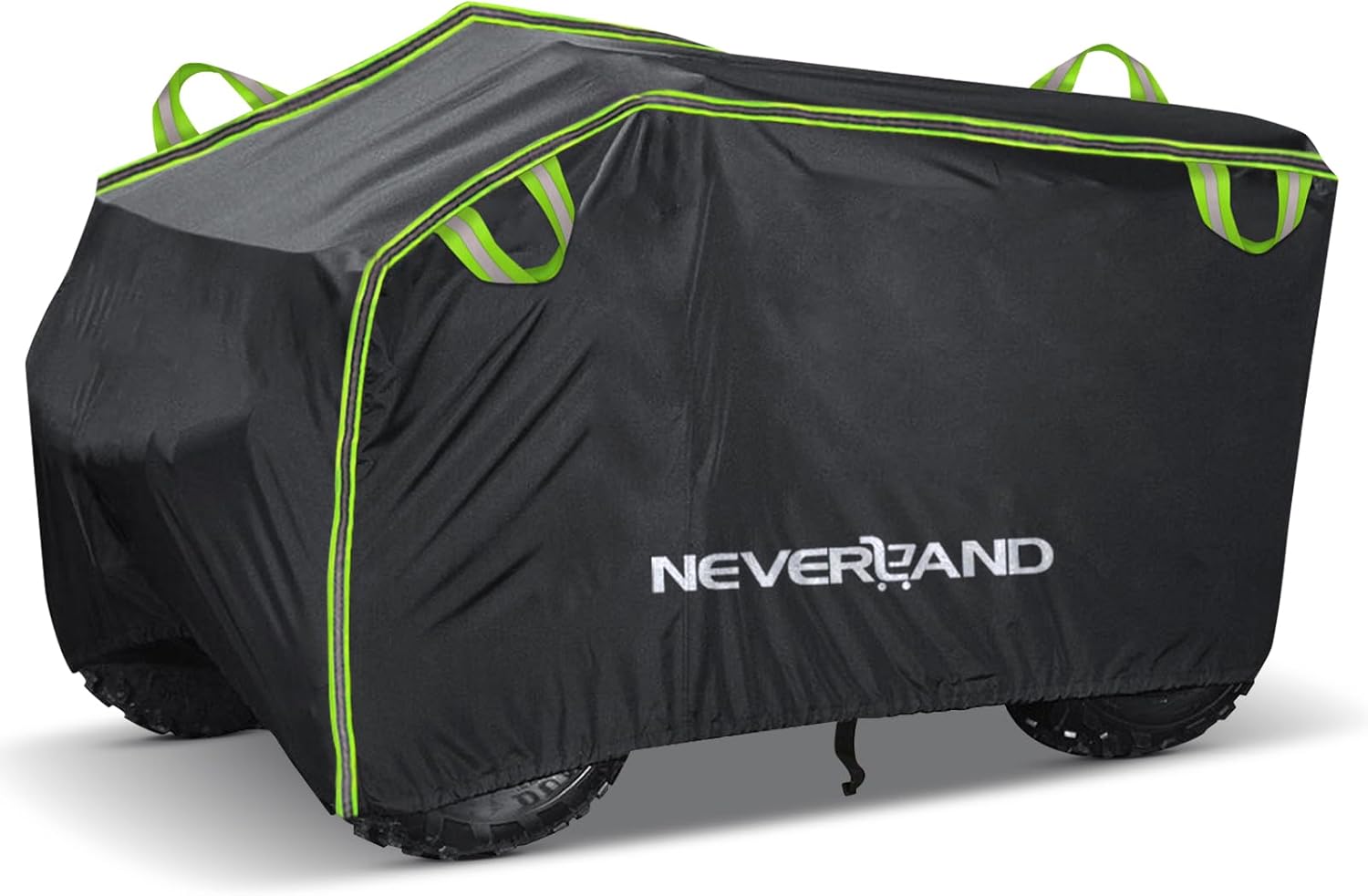 - ăQuality MaterialăNEVERLAND ATV cover is made of high-quality polyester fabric, which is more tear-resistant, wear-resistant, anti-ultraviolet and weather-resistant. ATV cover waterproof heavy duty design protects your ATV from dust, rain, heat, tree sap, damaging UV rays and bad weather