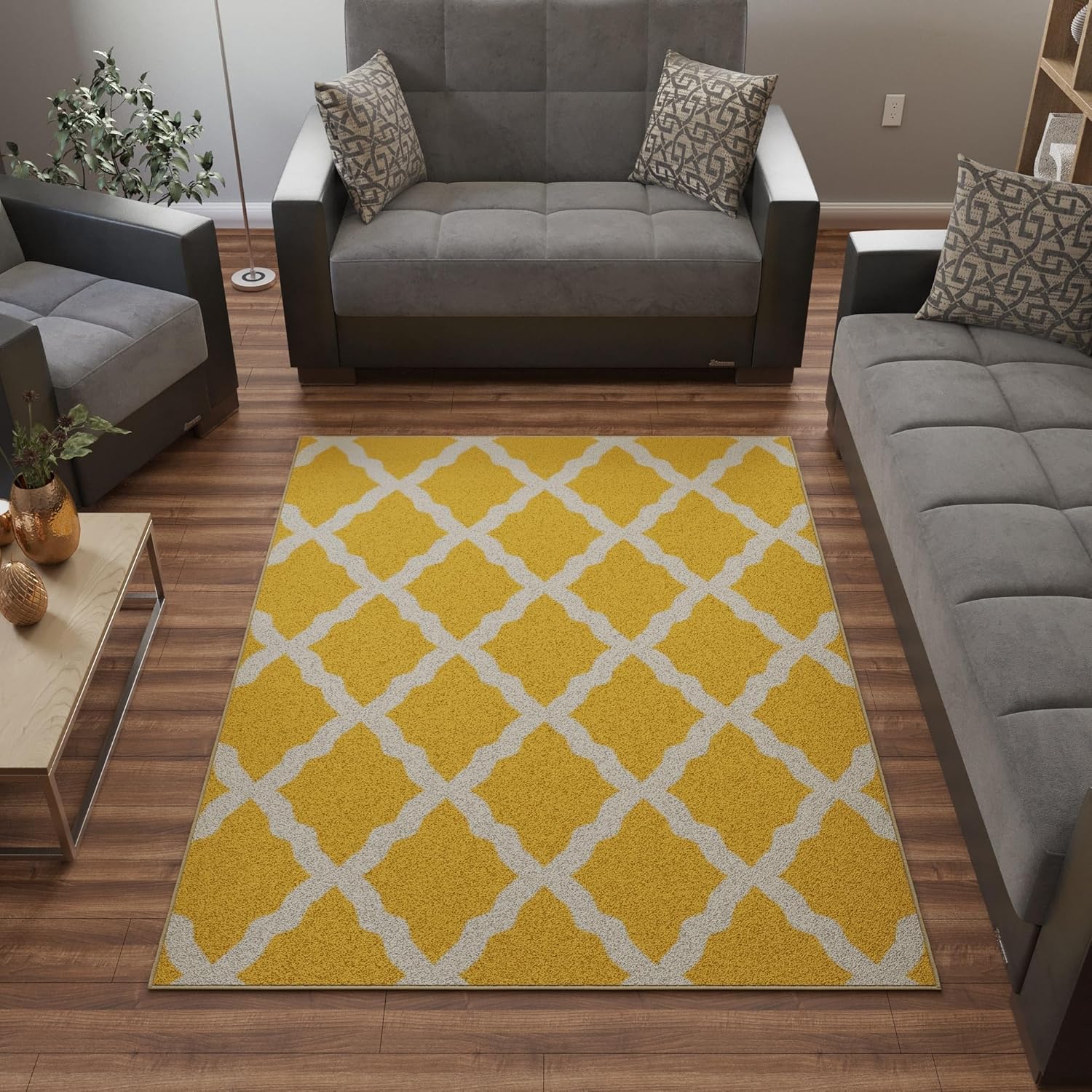 Ottomanson 5' x 6'6" Rugs for Living Room Trellis Area Rug for Bedroom - Non Slip Durable Large Floor Carpet for High Traffic Areas - Indoor Rug for Dining Room Kitchen Kids Playroom, Yellow