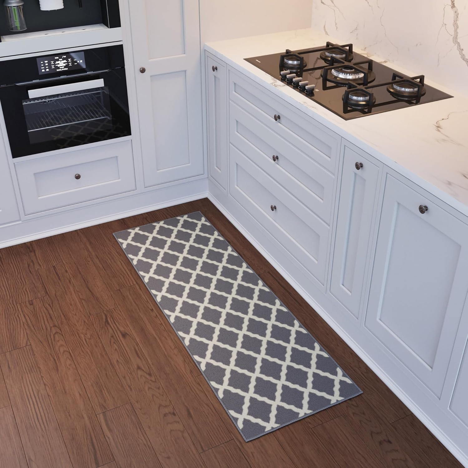 Ottomanson Hallway Runner Rug 2'2" x 6' Non Slip Trellis Area Rugs Easy to Clean Laundry Rug Runner Durable & Pet Friendly Floor Carpet Runners for Hallways Entryway Living Room Kitchen, Gray