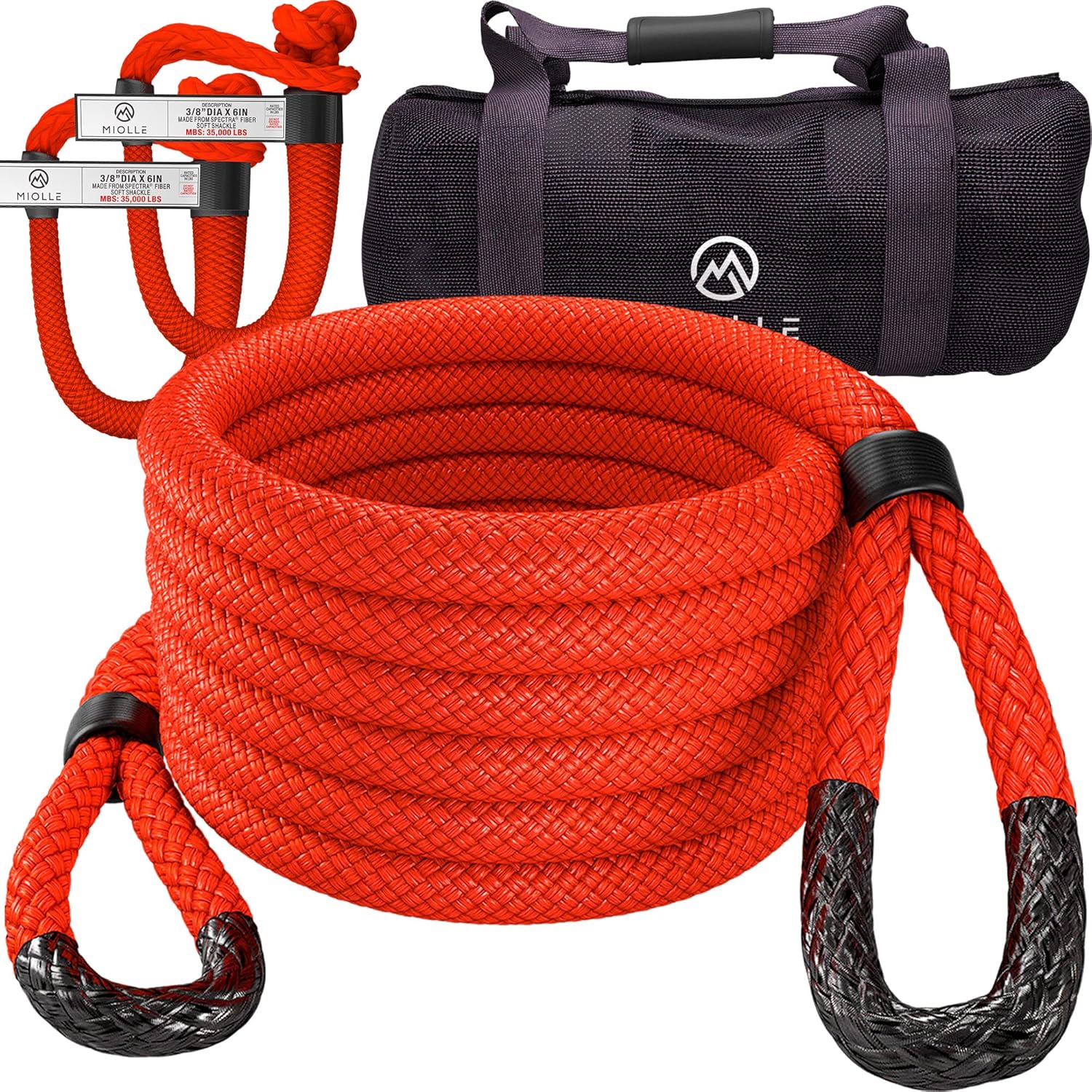 MiolleGear Kinetic Recovery Rope 1" x30' - Heavy Duty Offroad Snatch Strap - Includes 2 Soft Shackle for UTV, ATV, Truck, Car, Jeep, Tractor - Ultimate Recovery Gear