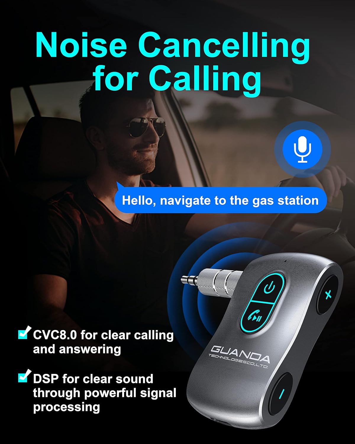 - INTELLIGENT NOISE REDUCTION: This car bluetooth adapter adopts the latest CVC8.0 Noise Cancellation and Digital Signal Processor (DSP) technologies, which eliminate echo and block out background noise, such as wind, traffic, or crowds, providing you with clear calling sounds.