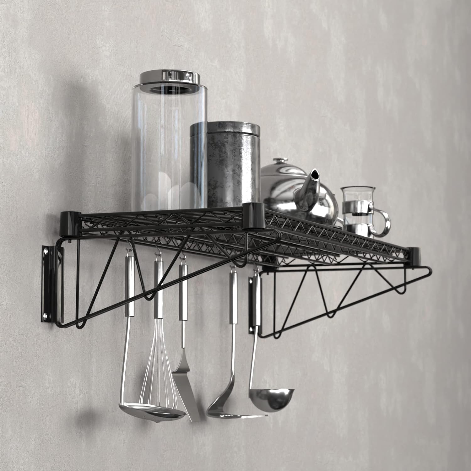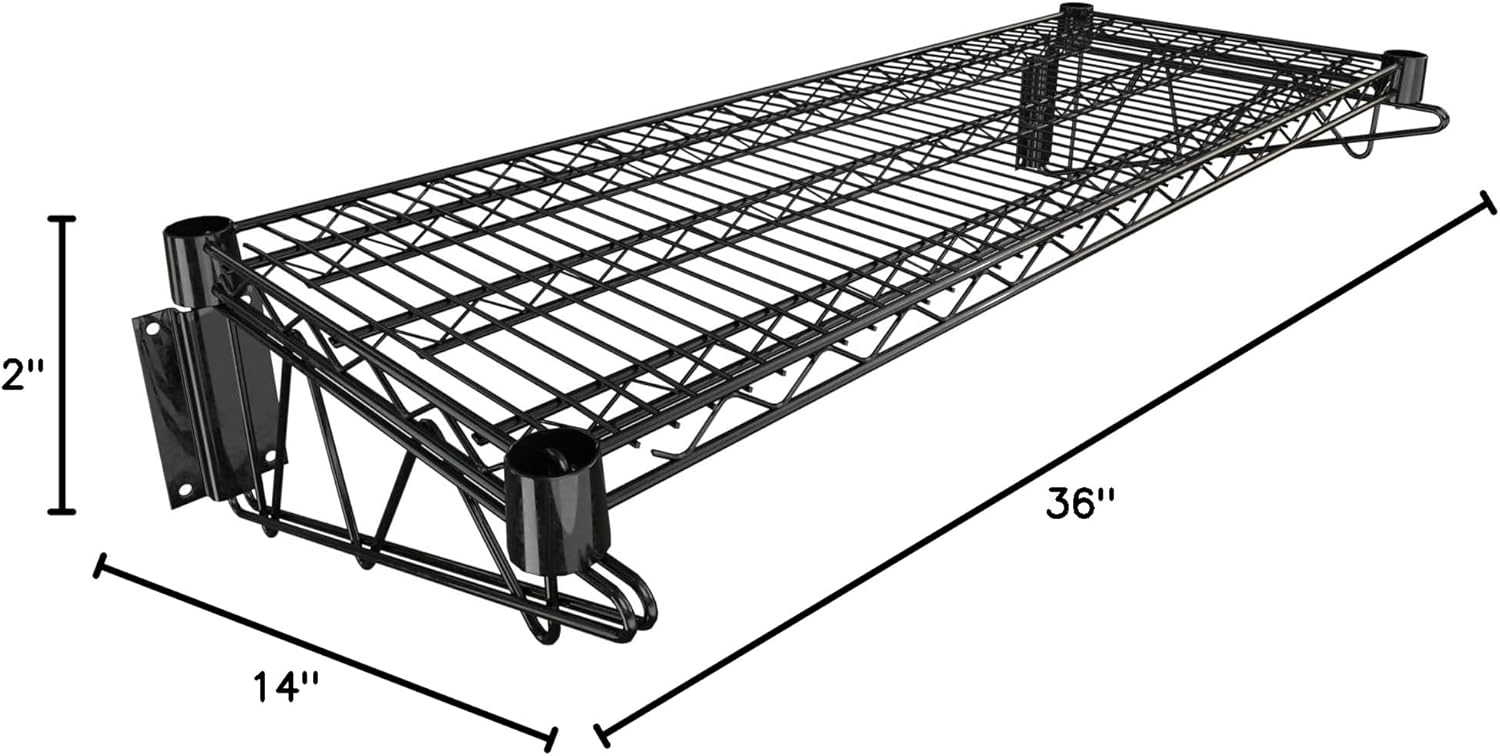 14" x 36" Black Epoxy Wire Wall Mount Shelf