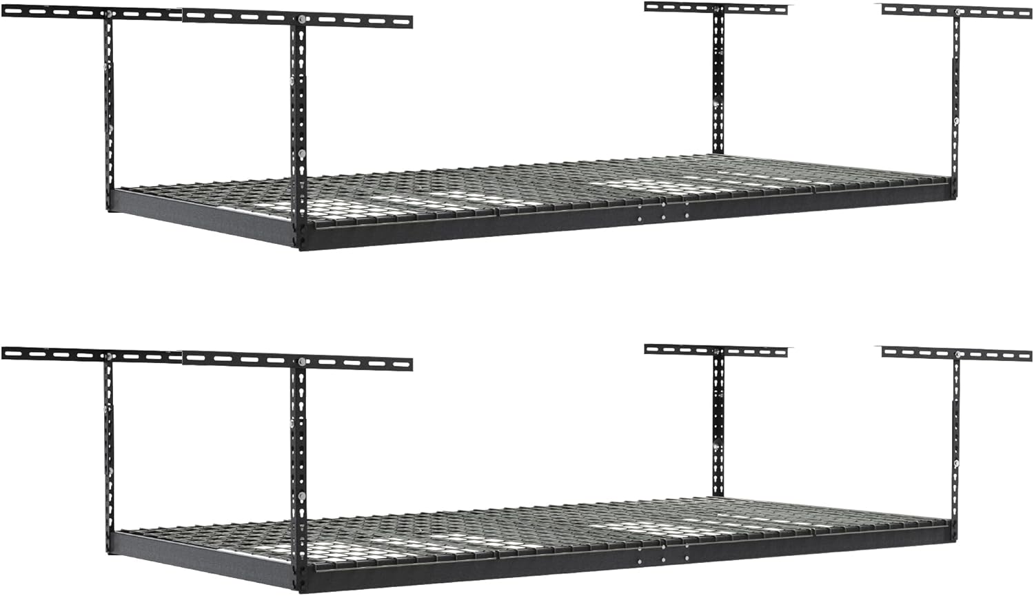 SafeRacks Heavy Duty Overhead Garage Storage Rack, 2-Pack 4x8 Hammertone, 12"-21", 600 lb Capacity, Adjustable Ceiling Mount