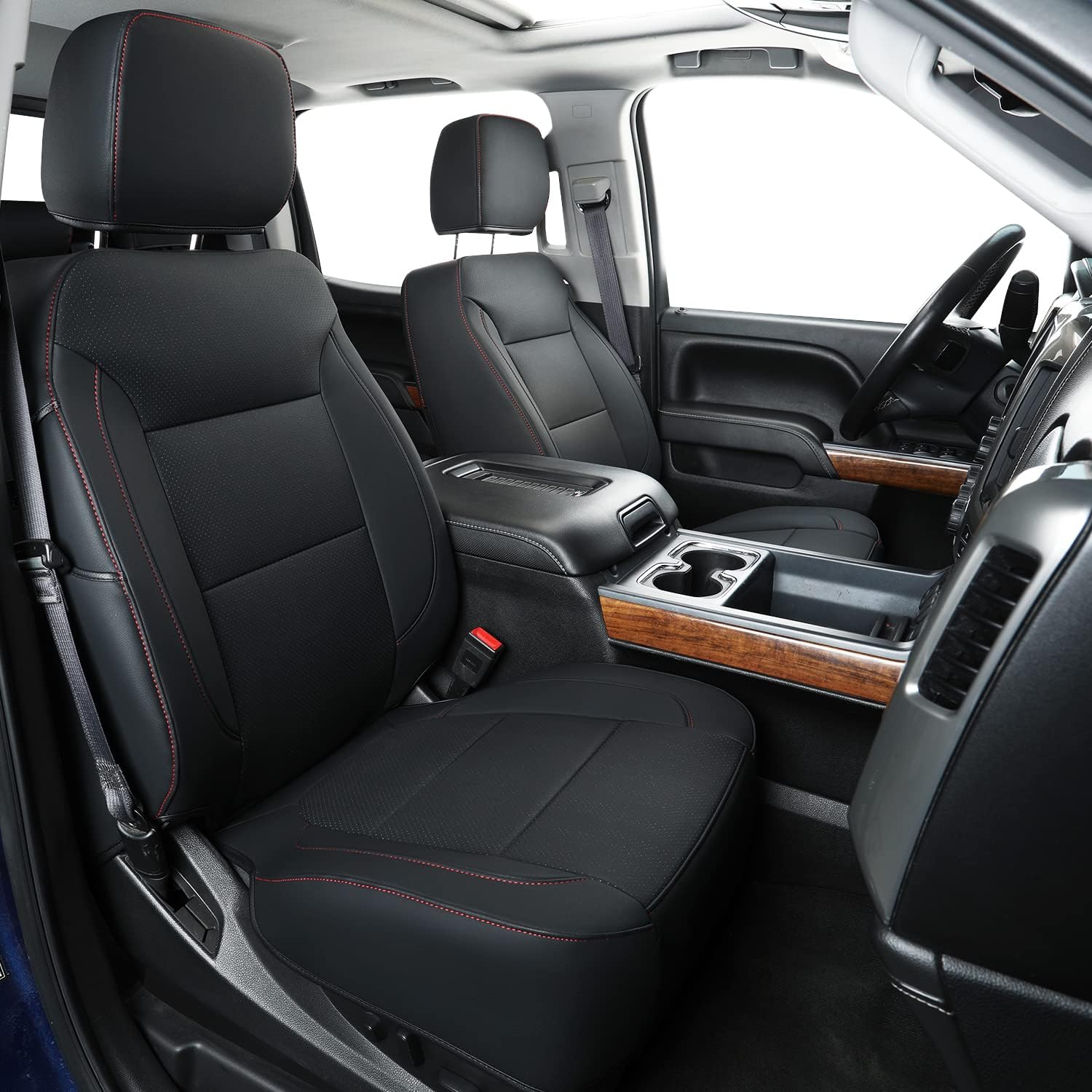 LUCKYMAN CLUB Custom Fit Seat Covers for 2019-2024 2025 Chevy Silverado Sierra 1500 Crew Cab, 2020-2024 2025 Silverado Sierra 2500 3500 Crew Cab (Black&Red)