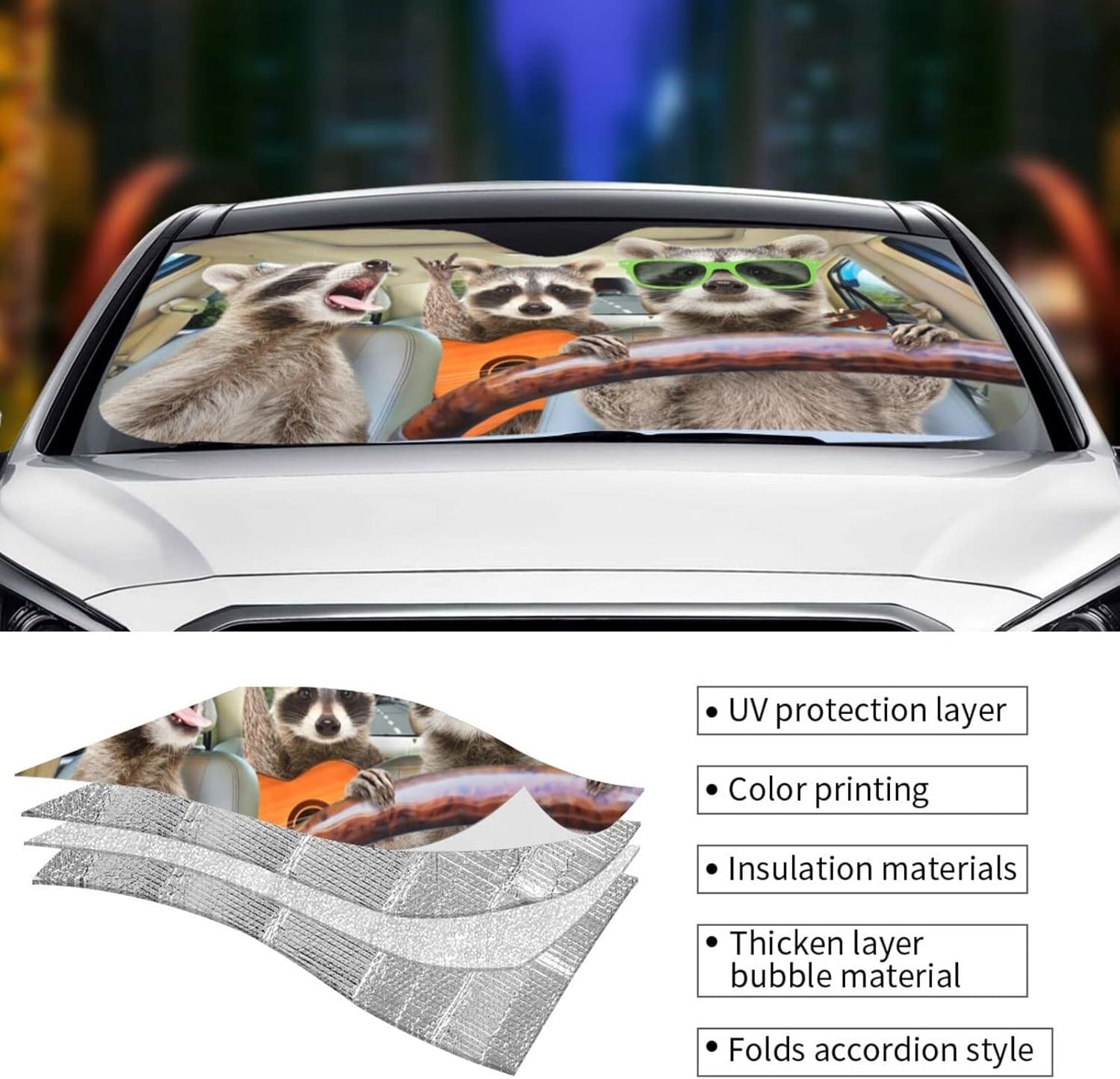 Raccoon Driving Car Windshield Sunshade Front Window Sun Visor Protector Foldable Shield Cover for Truck SUV