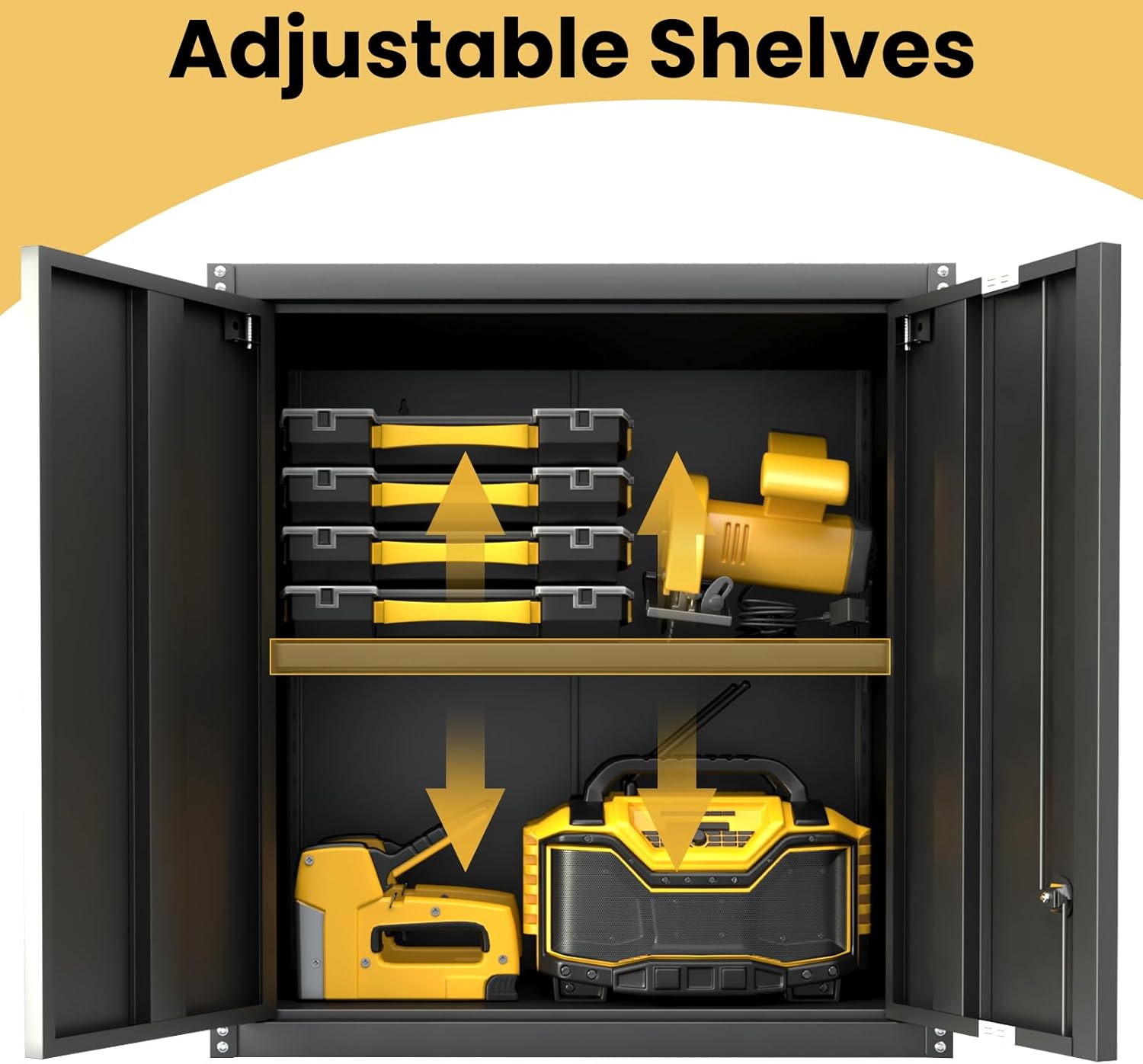 - ăMetal Storage CabinetăThe locking storage cabinets with 1 adjustable shelves can better meet your storage needs at home.You can adjust the shelves according to the height of the product.suitable for your garage, home office, bathroom,pantry or utility room