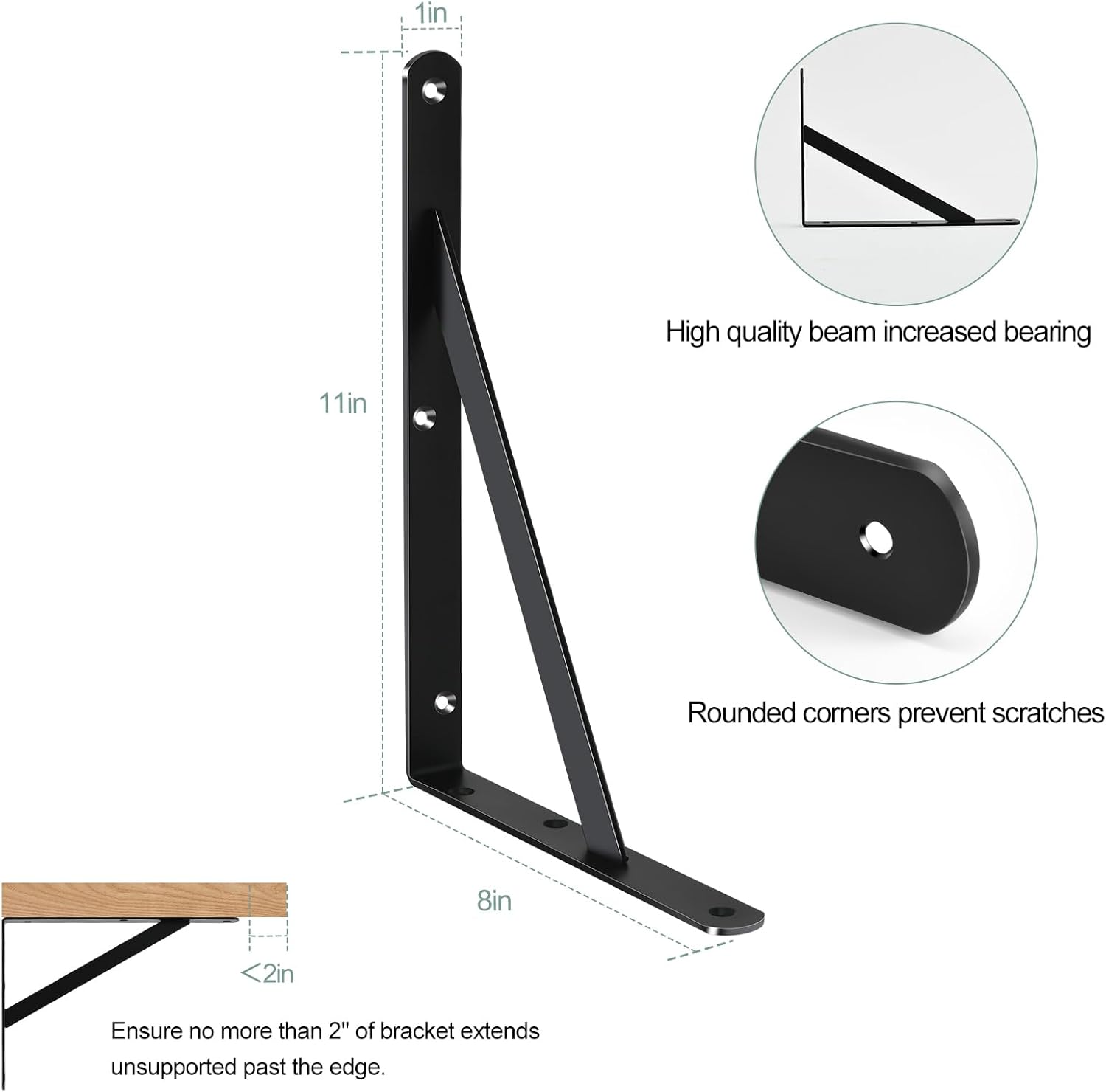 16 Pack L11 x H 8" Black Heavy Duty Shelf Brackets with Screws Metal Shelf Brackets Shelf Support Angle Brackets for Shelves L Brackets Heavy Duty Floating Shelf