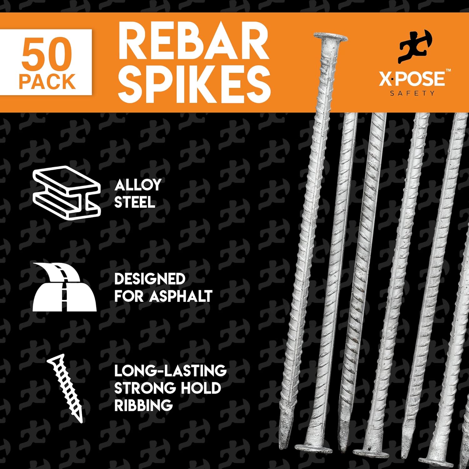 - 14" LONG REBAR SPIKES - Rebar stakes designed for asphalt, blacktop, tarmac, macadam, concrete, and pavement installations. 14-inch length with a 1/2-inch diameter is ideal for traffic and parking applications.