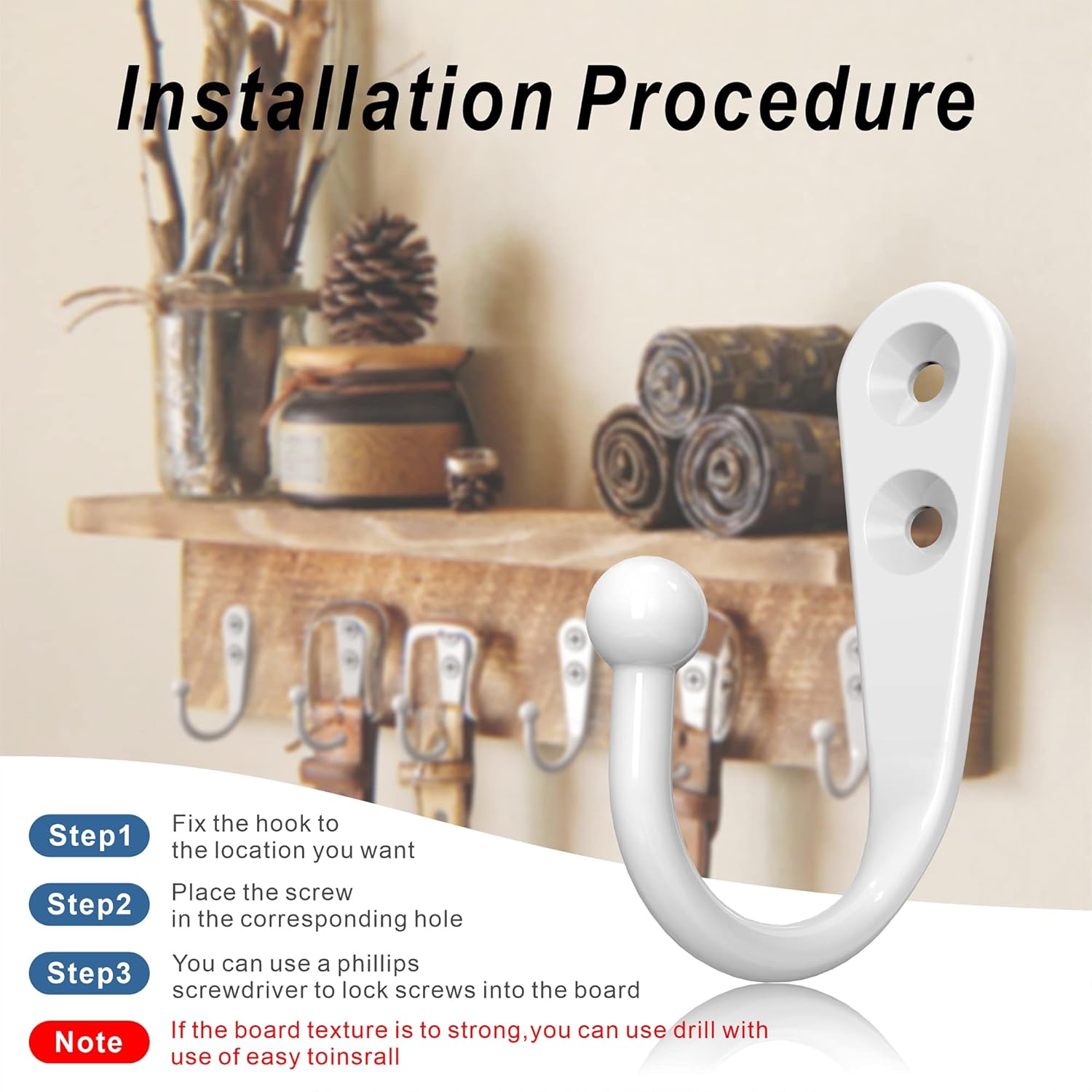 15PCS Coat Hooks - White Robe & Coat Wall Hooks with 30 Screws