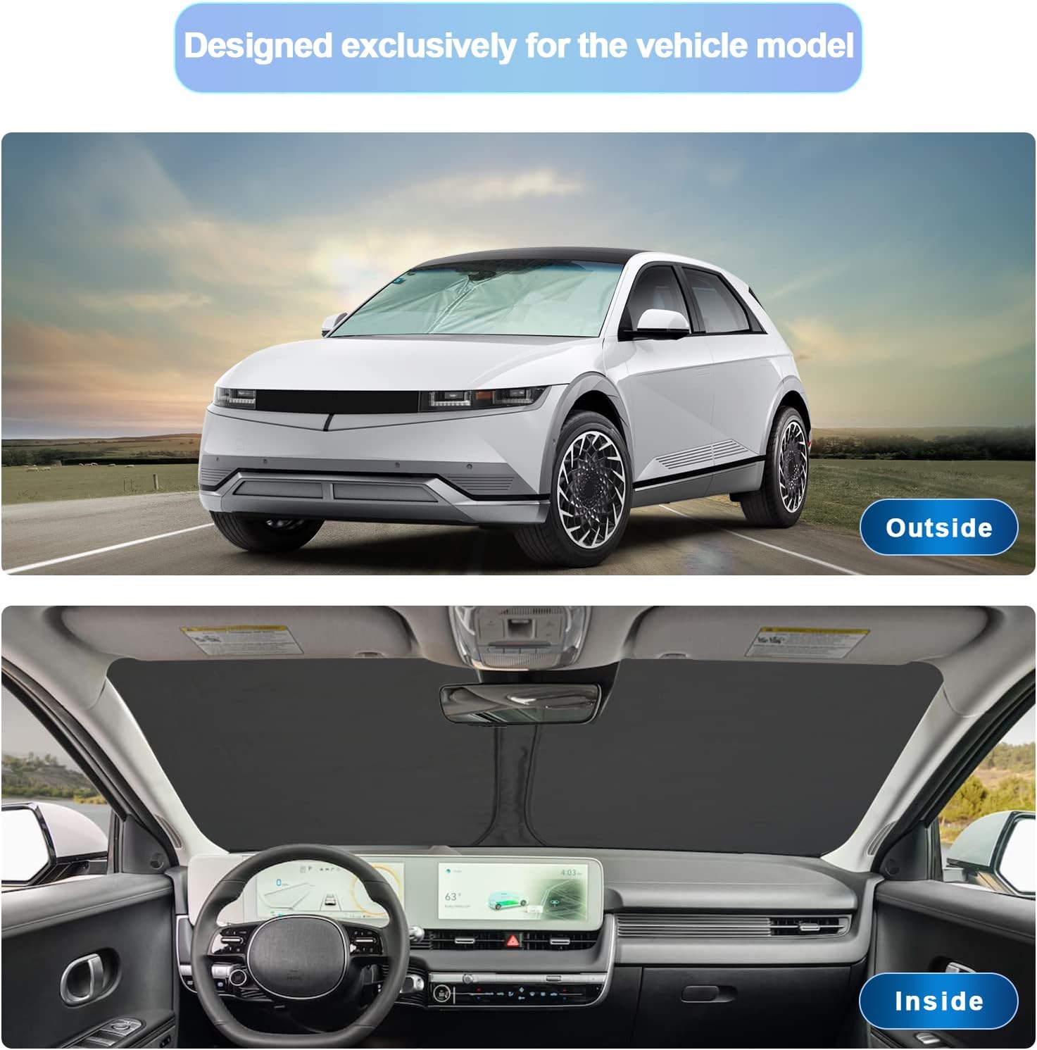- 1.Custom Fit: this windshield sun shade is custom designed for 2022 2023 2024 2025 hyundai ioniq 5 sunshade for 2022 2023 2024 2025 hyundai ioniq 5 accessories front window.You donât need to worry about oversize or too small,consider it if you need a car protector cover that protects your car interior from sunburn.