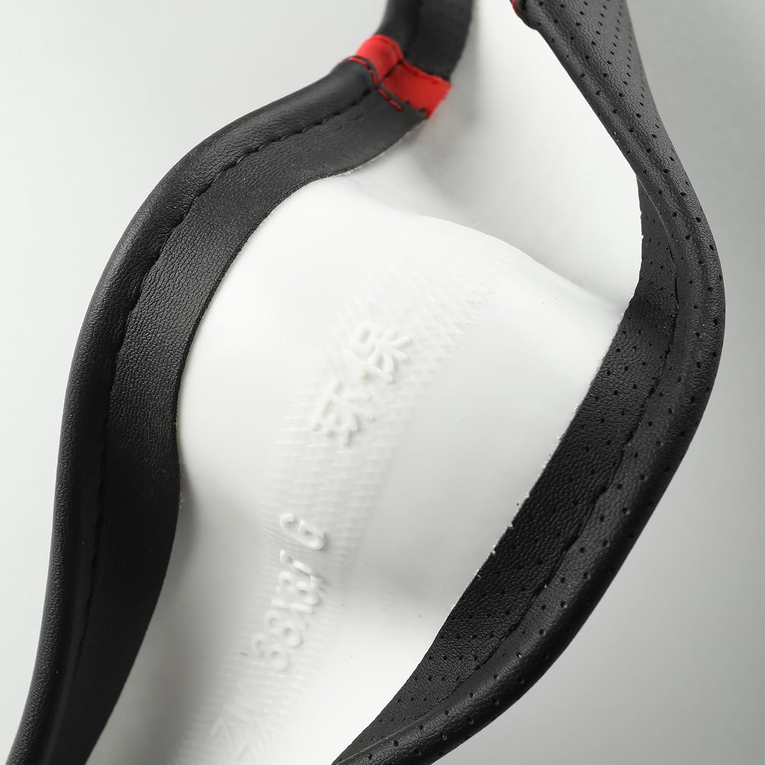 - Anti-slip and Shockproof:This steering wheel cover is designed with a unique red anti-skid line, which can well increase the friction between the palm and the steering wheel cover, providing excellent anti-slip performance. The inner ring of the steering wheel cover absorbs shocks, provides excellent shock resistance and provides a better grip.