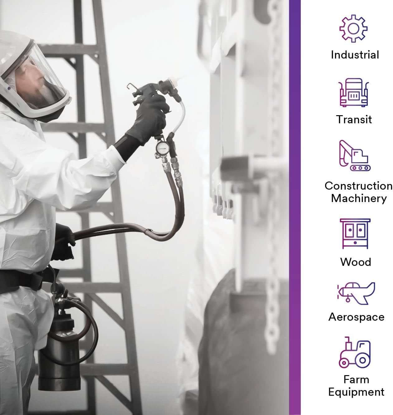 - VERSATILE: 0.9, 1.2, 1.3, 1.4, 1.6, 1.8, and 2.0 nozzel sizes for spraying a wide range of industrial and automotive coatings including high-viscosity coatings, sprayable fillers, high-build primers, primer surfacers, sealers, single-stage top coats, solvent-based paints, waterborne paints and clearcoats
