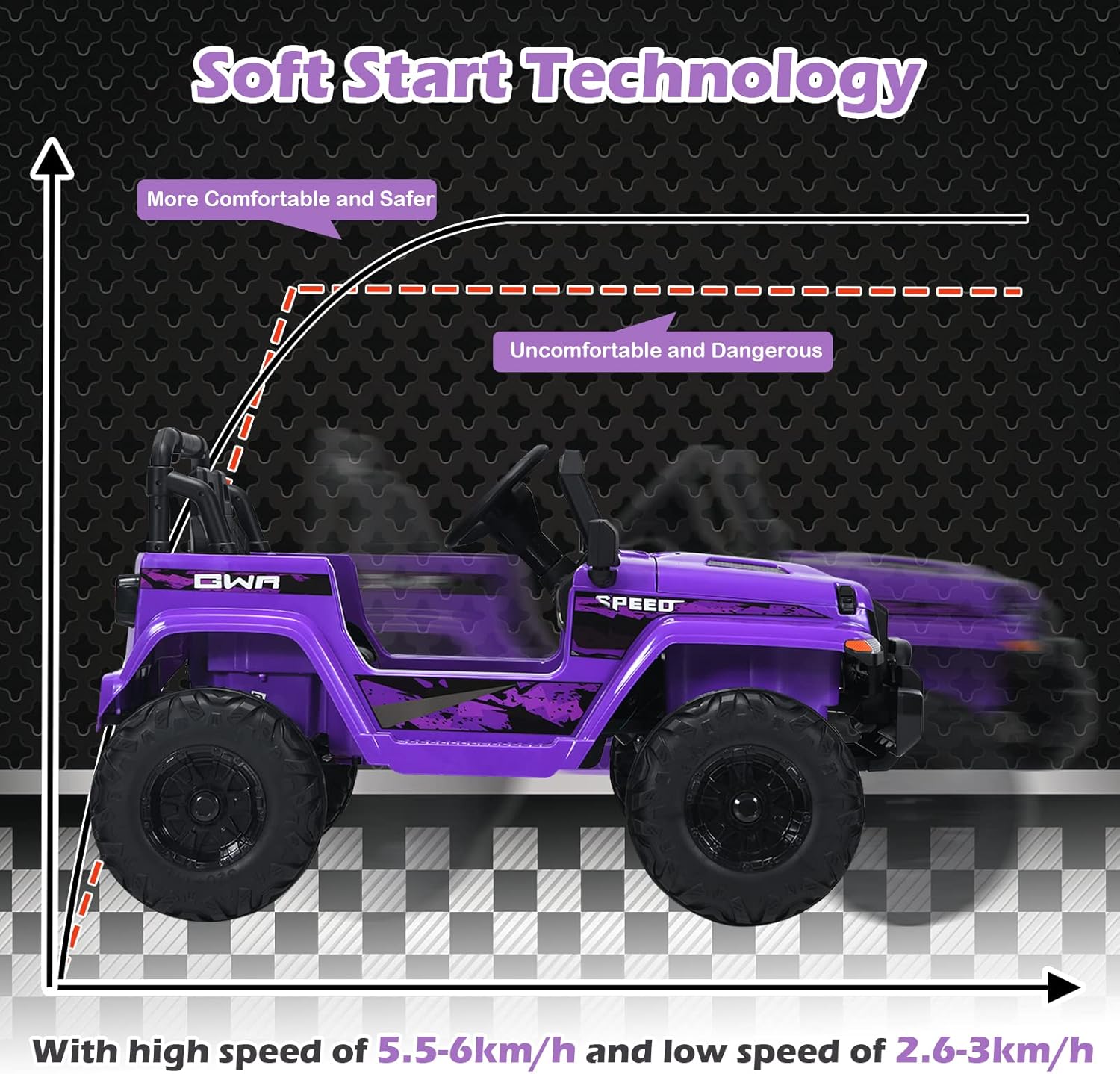 - TWO DRIVING MODES: 1. Manual control by kids. Your child can control the car by steering and pedals. The 2 seater ride on car can be started or turned off with one click and has high and low speeds. Children can improve their independence and coordination through this driving experience. 2. Remote control by parents. The highly sensitive remote control can control the forward, backward, left and right steering. And three speeds can be adjusted. Of course, parents can control the brakes with one click.