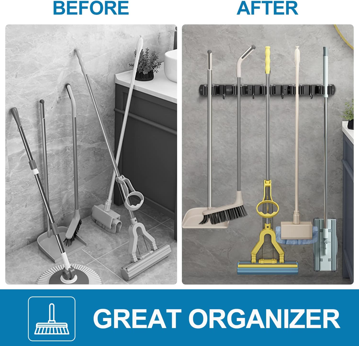 - Heavy Duty: Mop holder grip everything tightly and securely without slip. It can hold up to about 9 tools in total. Keep your place cleaned up and keep things organized