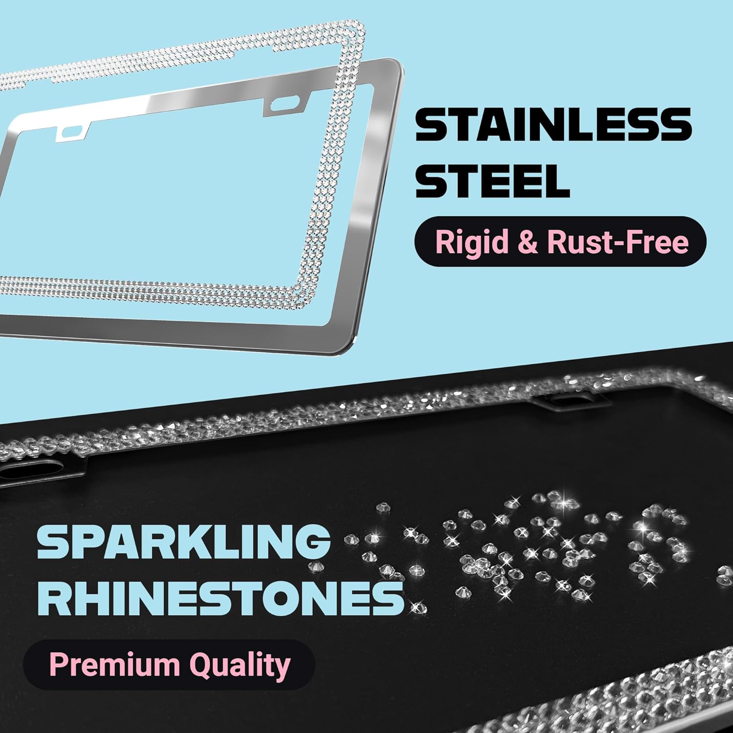 - Glitter Bling Rhinestone License Plate Frame for Women: Add a cute, girly, glittery touch to your ride with this stunning 1-pack licence plate frame thatâs made to shine.