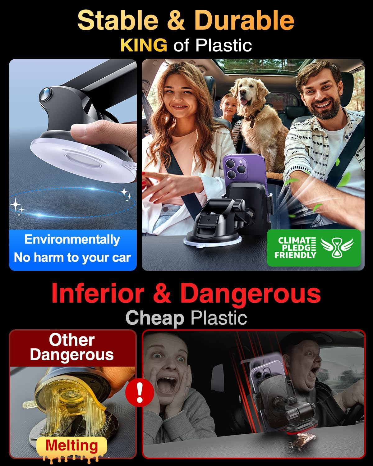 - 【Quality-focused】 Certified by RoHS, REACH. The company has a dedicated laboratory for researching and testing products. The latest 3-layer adhesive can withstand extreme temperatures ranging from -44 to 212℉. This guarantees that your car phone holder mount will maintain its high-quality performance in any climate.