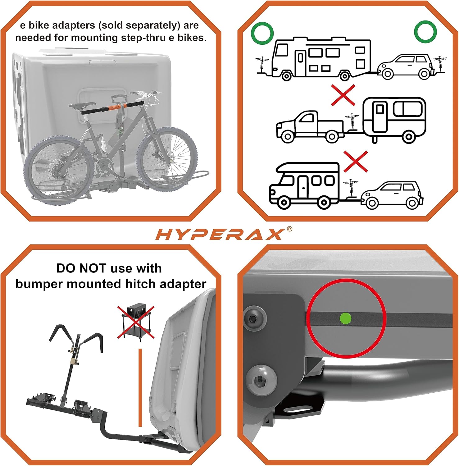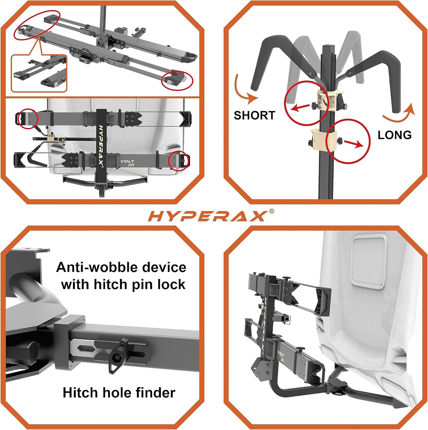 HYPERAX Patented Lift Assisted Volt Lift RV Rated Hitch Mounted 2 E Bike Rack Carrier Up to 2X 80lbs eBikes with Up to 5" Fat Tires for RV and SUV