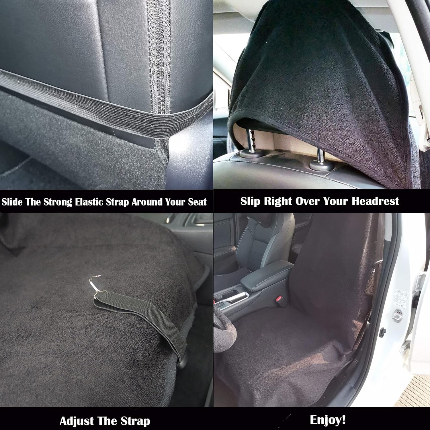 - Perfect Size: Our car seat towel with large, full coverage design measured at 29.5”wide x 56" long will protect your whole seat comfortably. Our adjustable elastic strap seat protector is designed to fit most vehicle seats snugly.