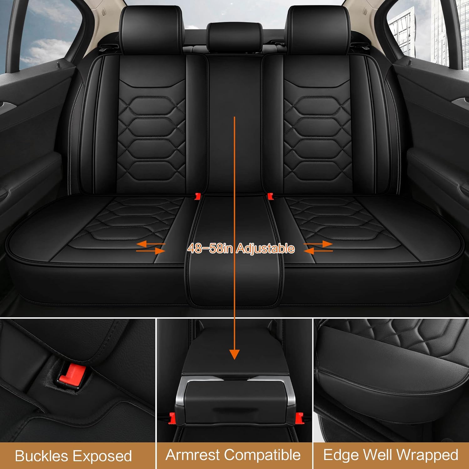 - Airbag Compatible: Our universal fit seat covers with a unique visual design are fully compatible with any built-in airbags. And all the seat belt buckles are fully exposed for your daily safe use.