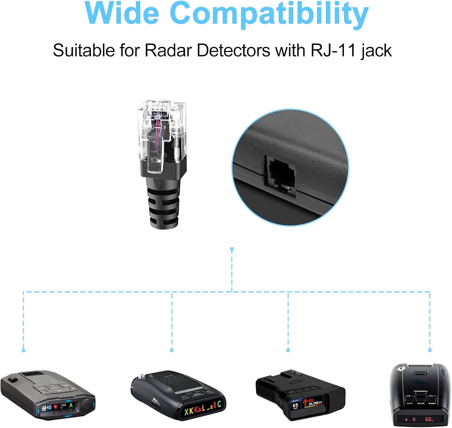 - 【Compatibility】Our radar power cord is applicable to the radar detector of the Uniden R1 R3 R7 DFR7 DFR8,Escort Passport Beltronics Radenso XP and the radar detector of the RJ11 telephone plug, and has a variety of lengths to choose from (Please pay attention to the interface type and length)