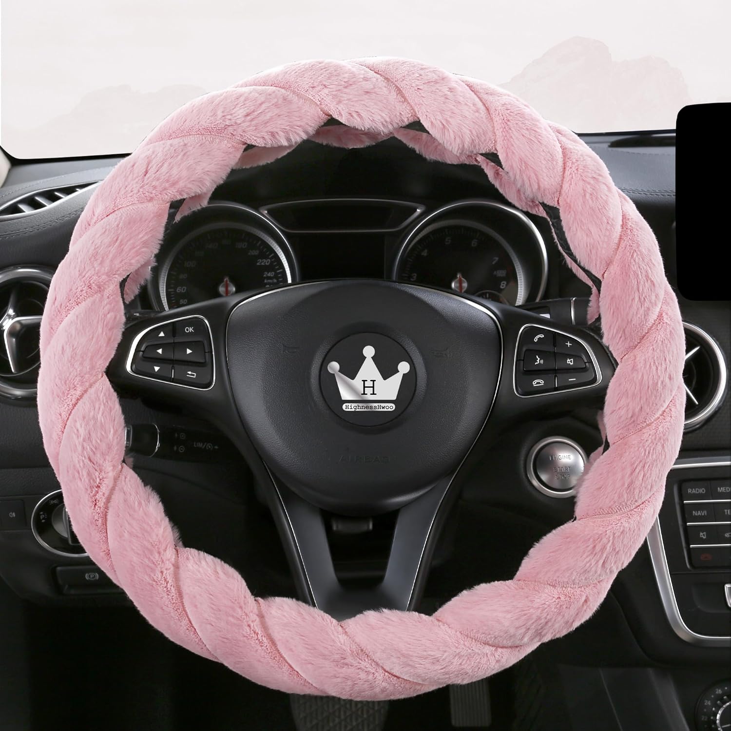 Luxury Fluffy Winter Car Steering Wheel Cover for Women Soft Warm Handle Cover for Jeep Truck Van F150 Universal Fuzzy Anti Slip, Pink