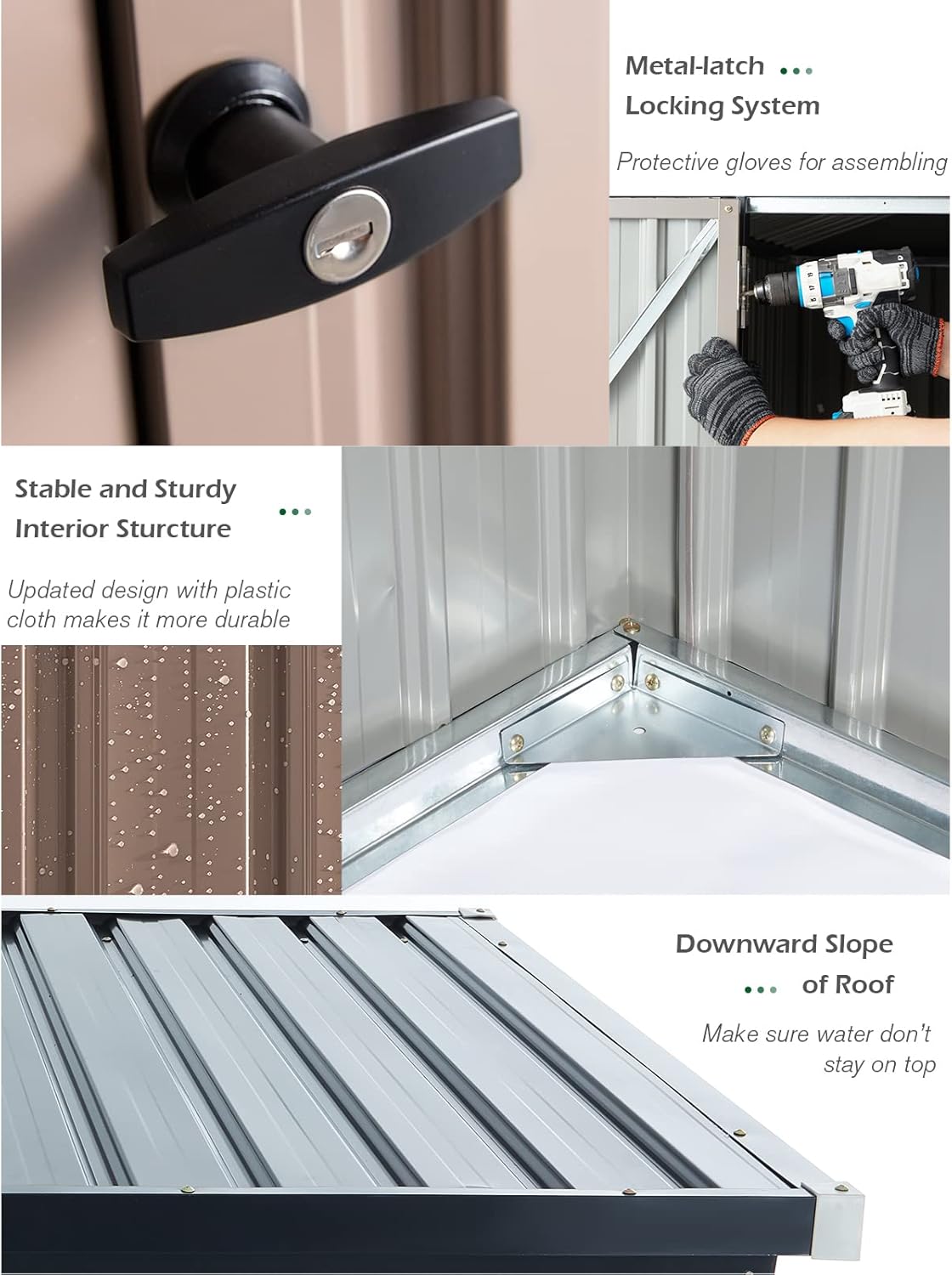 - Sturdy&Resilient: Upgrades to each metal plate make the shed weighs 110lbs, surpassing cheaper alternatives, and significantly fortifying stability. Withstand severe weather conditions with exceptional wind resistance of approximately 70 Mph.