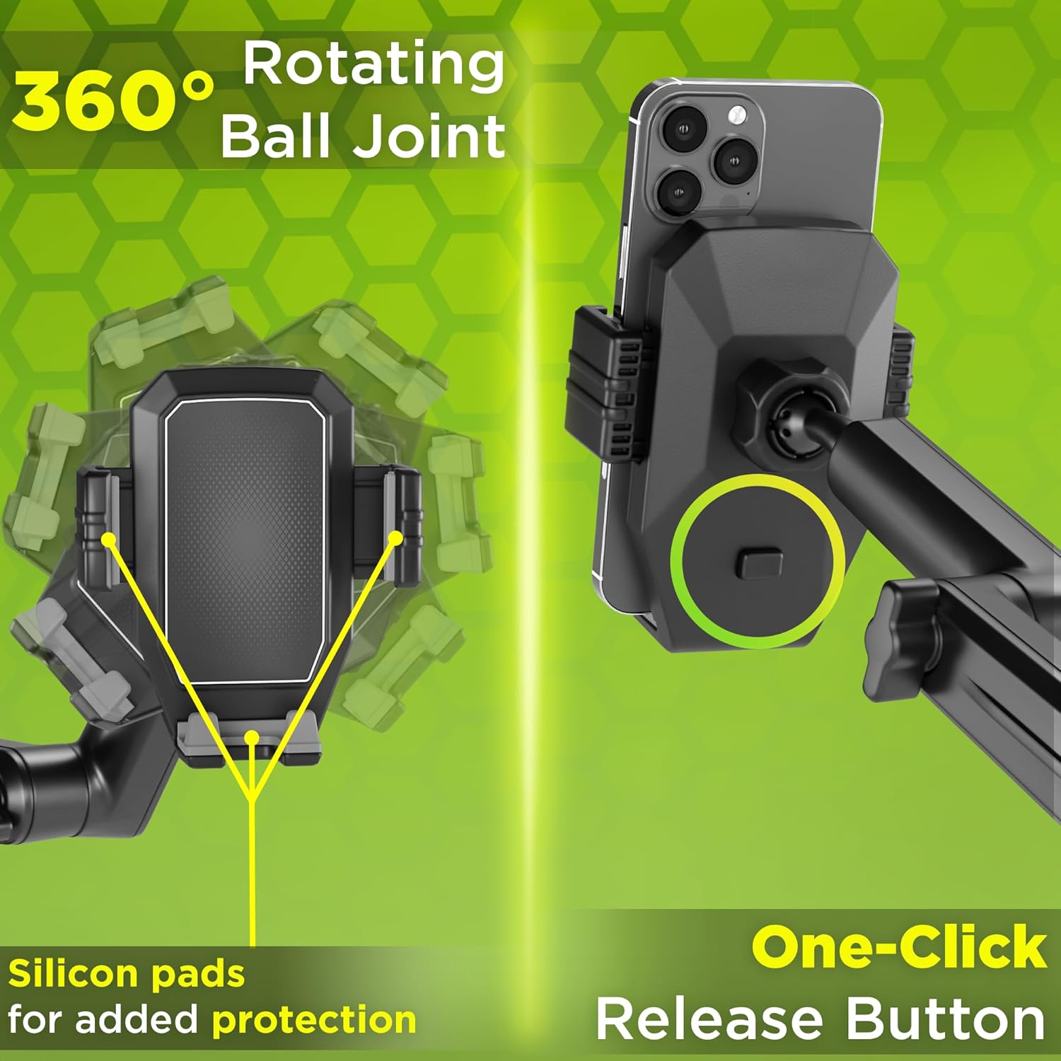 - ๐ใ๐๐จ-๐๐จ๐ง๐ฌ๐๐ง๐ฌ๐ ๐๐ข๐๐, ๐ ๐ฎ๐ฅ๐ฅ ๐๐ข๐ ๐ก๐ฐ๐๐ฒ ๐๐ข๐ฌ๐ข๐๐ข๐ฅ๐ข๐ญ๐ฒใ- Truck phone mount 360ยฐ rotation lets you position your phone however you want, ensuring a smooth journey with zero blind spots.
