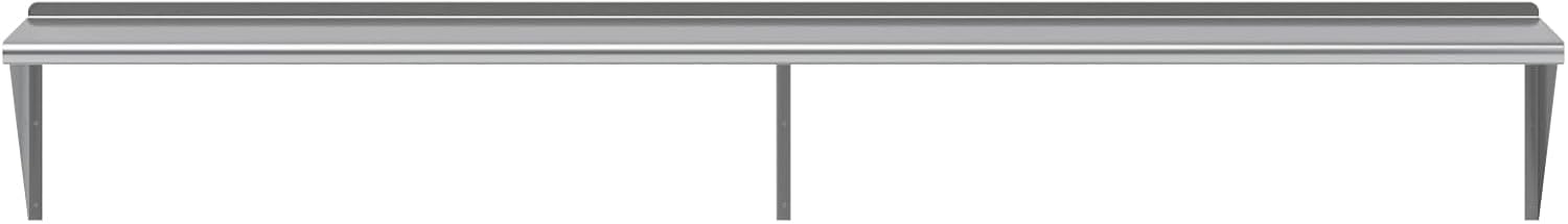 - 18 in. x 96 in. Stainless Steel Wall Shelf with 13 in. High Mounting Brackets. This heavy-duty multifunctional stainless wall shelf is made with 18 gauge stainless steel and can hold up to 605 Lbs of weight. The design features a 1 in. backsplash and bullnose edge. It's made with durable welded corners and support brackets.