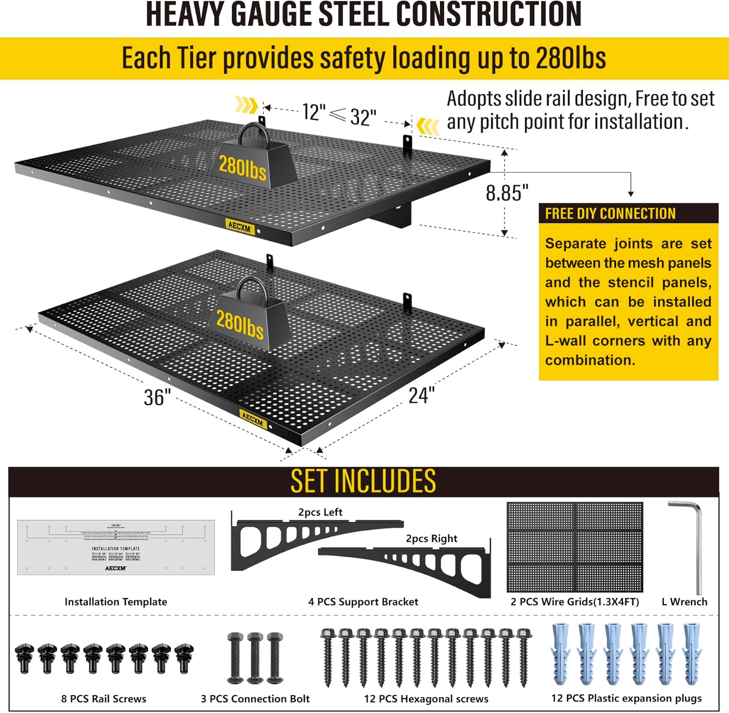 - Customer Support: AECXM offers comprehensive after-sales service. If you have any questions, feel free to contact our team—we’ll assist you promptly. (Note: For installation on brick or concrete walls, use expansion anchors to securely fasten the heavy duty shelving after drilling.)
