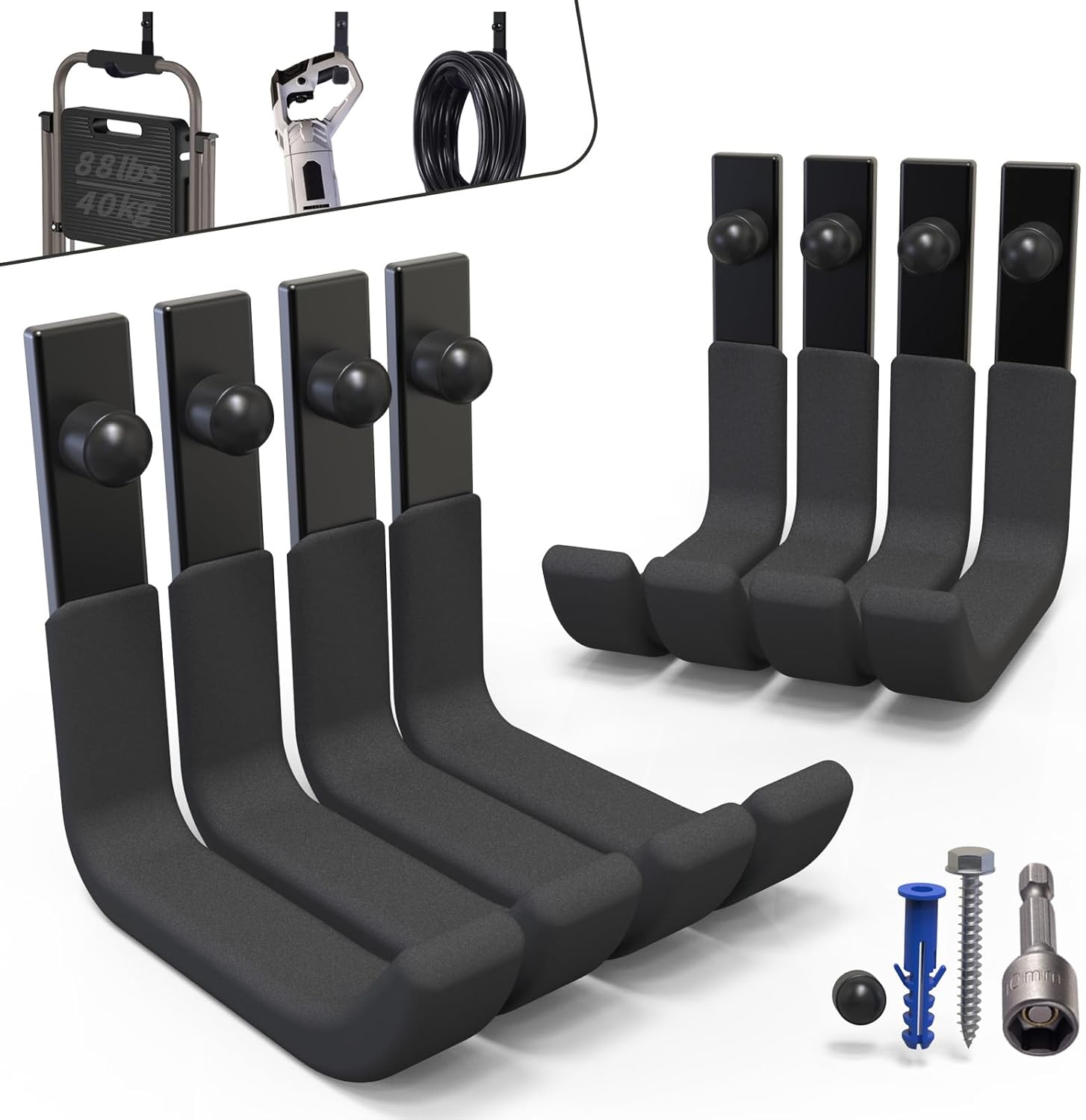 - ▶【MULTI-PURPOSE】Storage single hook provides more flexibility and can be used in combination. This garage wall hooks can hang everything from sports fitness equipment to yard lawn tools, such as snow shovels, folding chairs, tire, strollers, extension cords and other bulky Items.