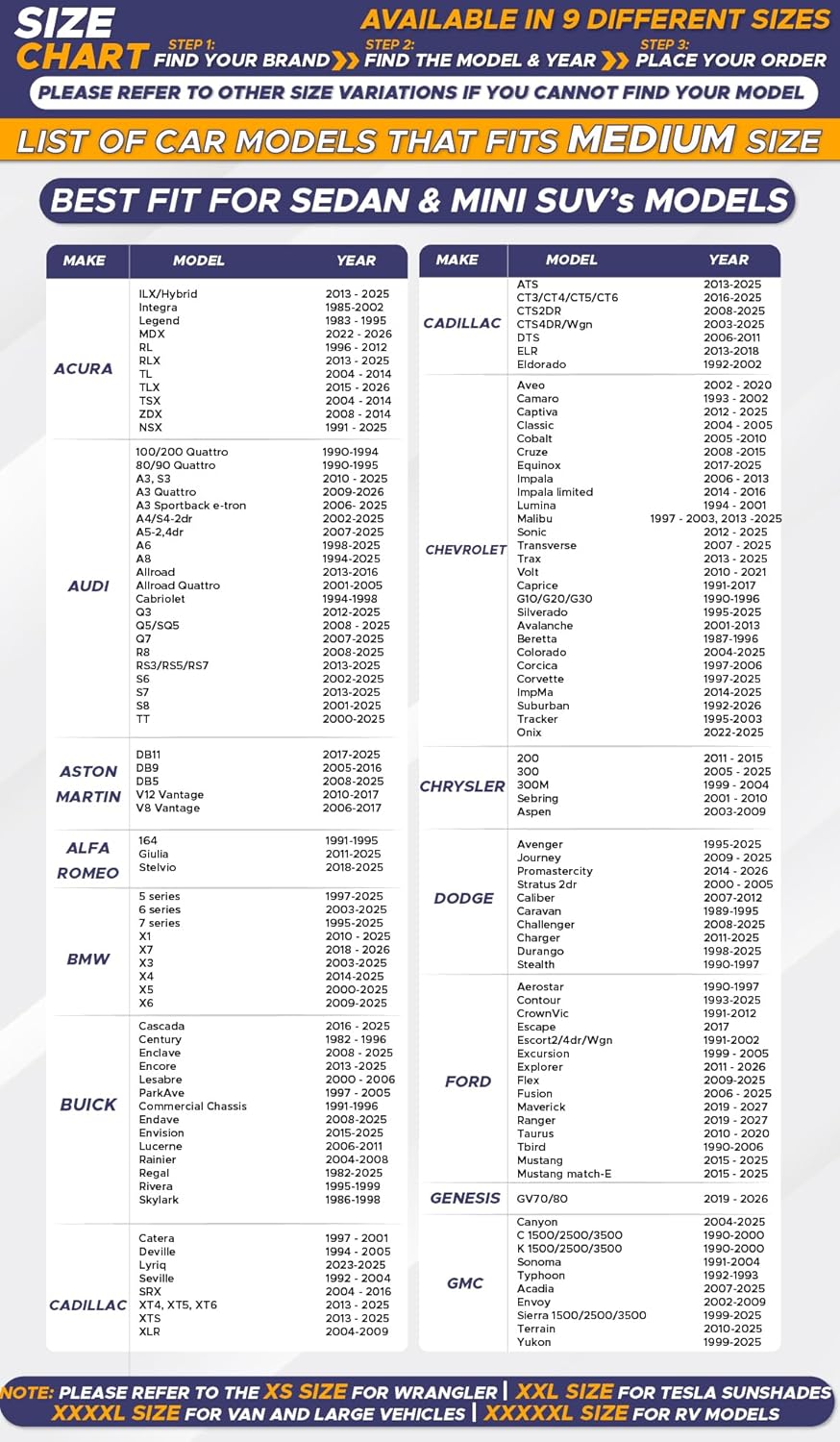 - Wide Range of Sizes for All Vehicles: EcoNour’s car window shades are available in seven size variants to suit sedans, SUVs, and family-sized vehicles. Refer to our size chart to select the ideal window sun blocker for your car's windshield.