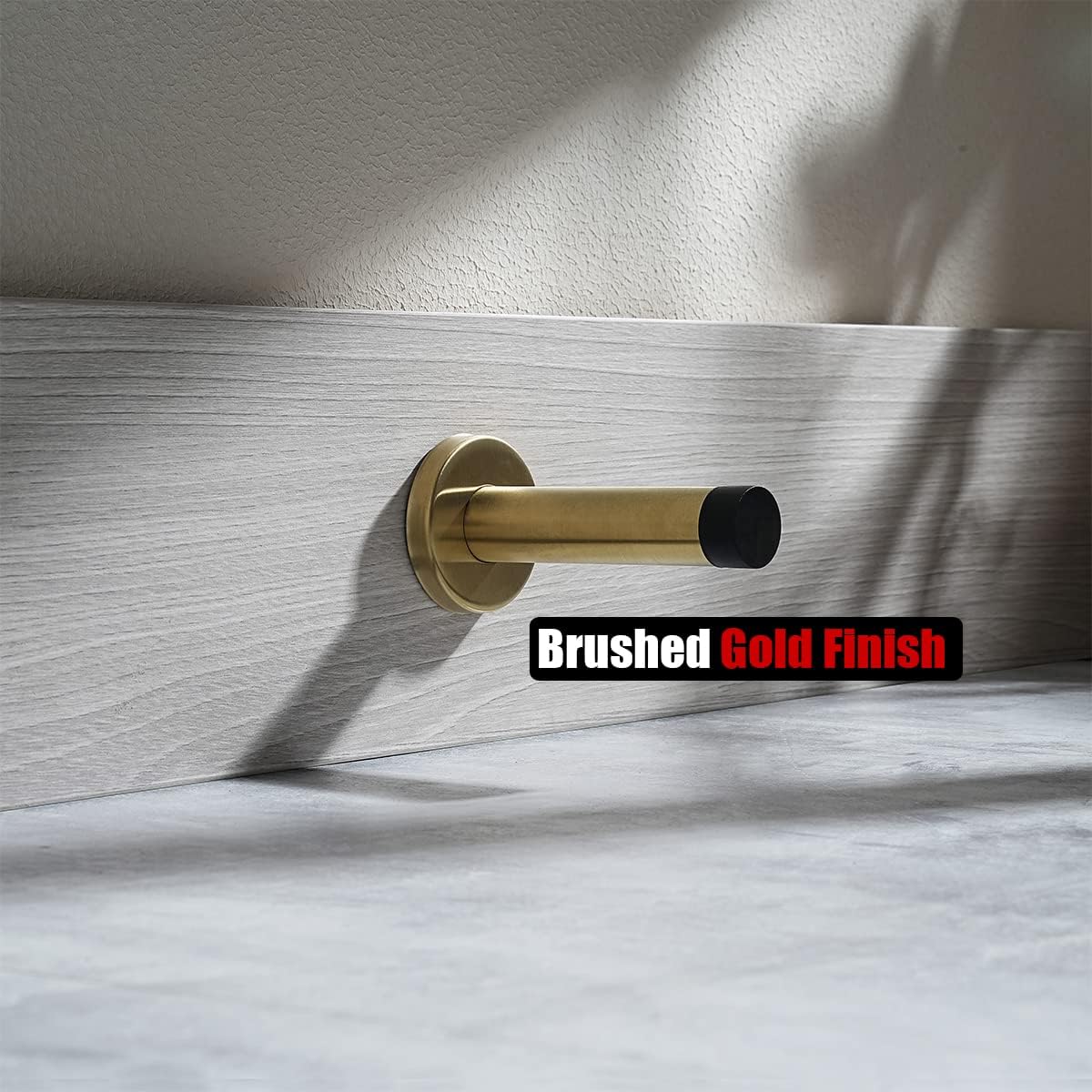JQK Door Stopper Gold, 304 Stainless Steel Thicken 1mm Sound Dampening Door Stop Bumper Wall Protetor 4 Pack, Brushed Gold, DSB5-BG-P4