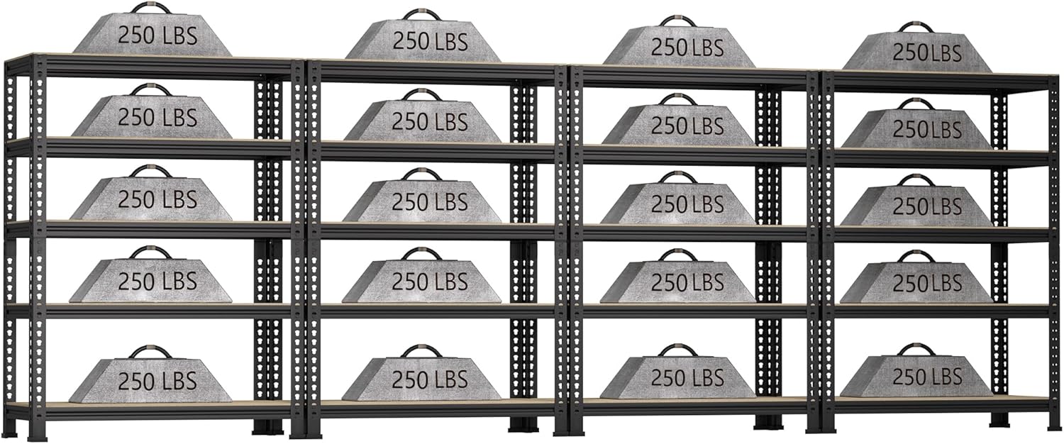 5-Shelf Heavy Duty Shelving - Adjustable Garage Storage Shelves, Metal Utility Storage Racks for Warehouse Pantry Basement Kitchen, Garage Organizers Shef Unit, Black, Packs of 4