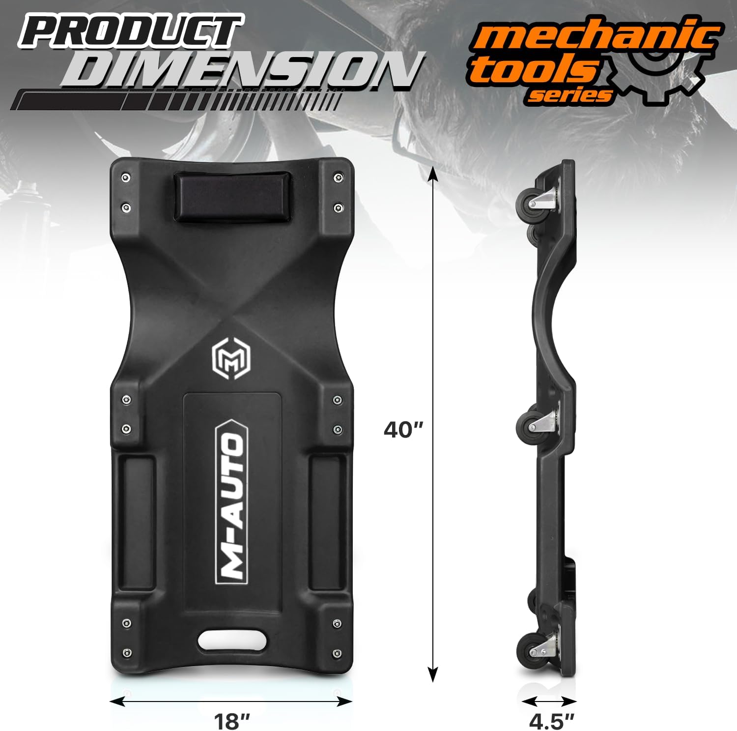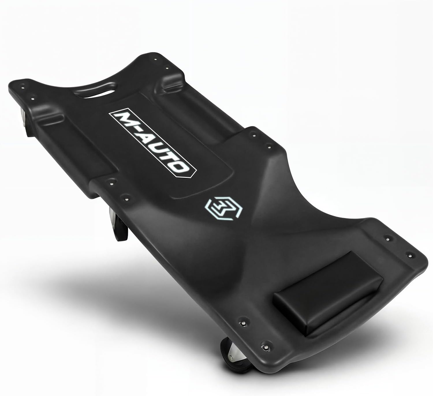 M-AUTO Mechanic Roller Creeper with Padded Headrest, Dual Tool Trays Rolling Creeper for Garage Shop Auto Work Repair, 40" Light Weight Mechanic Cart, Black