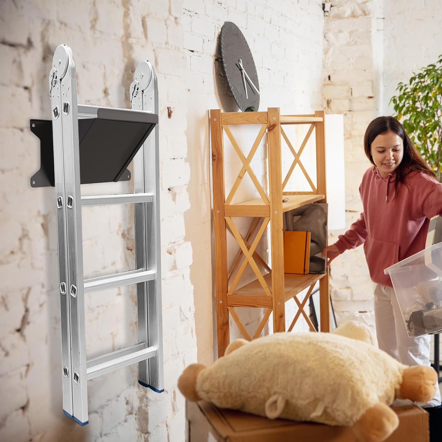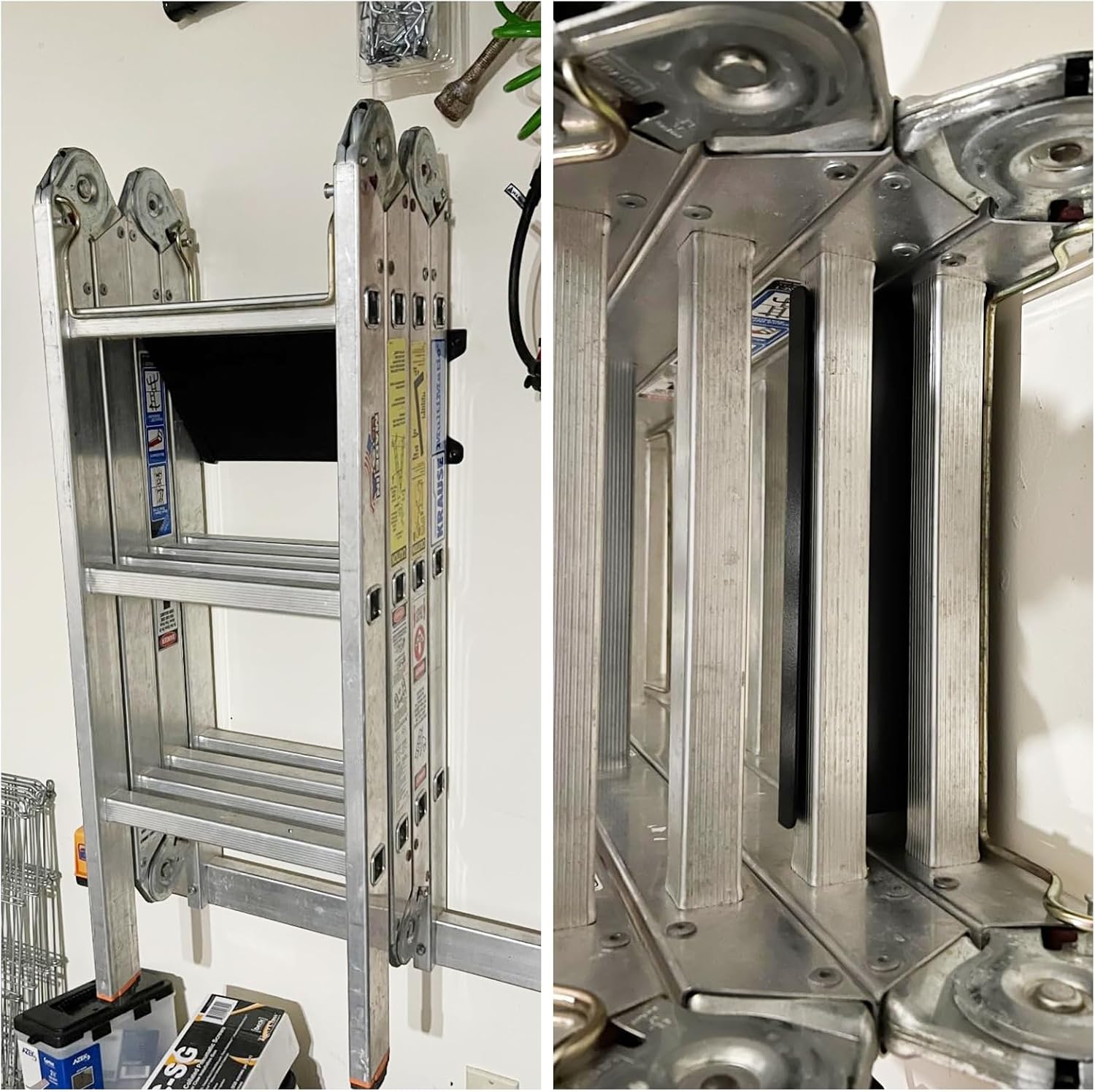 - Storage & Organization: Ladder hangers for garage wall is the Best Garage or Shed Ladder Storage Solution for Your ladder rack Organizational and Cleaning Needs, save space.Ladder wall mount ladder hooks Fits to most little giant ladder and other