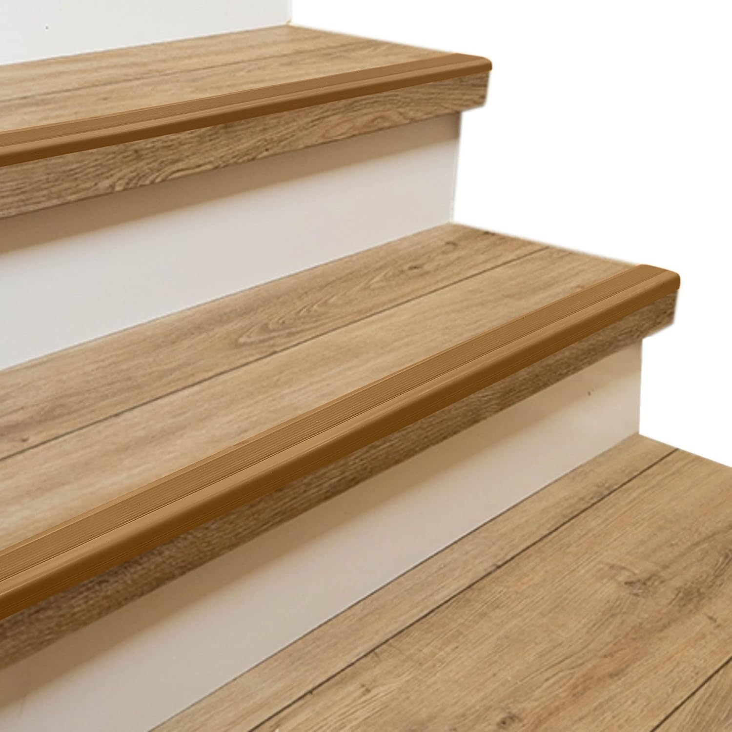 Rubber Bond Stair Edge Protector (Pack of 5) 36x2x1 inch Anti-Slip Stair Corner Trim Rubber Strips - Waterproof Self-Adhesive Staircases for Outdoor & Indoor Uses | Protect Kids & Pets - Brown