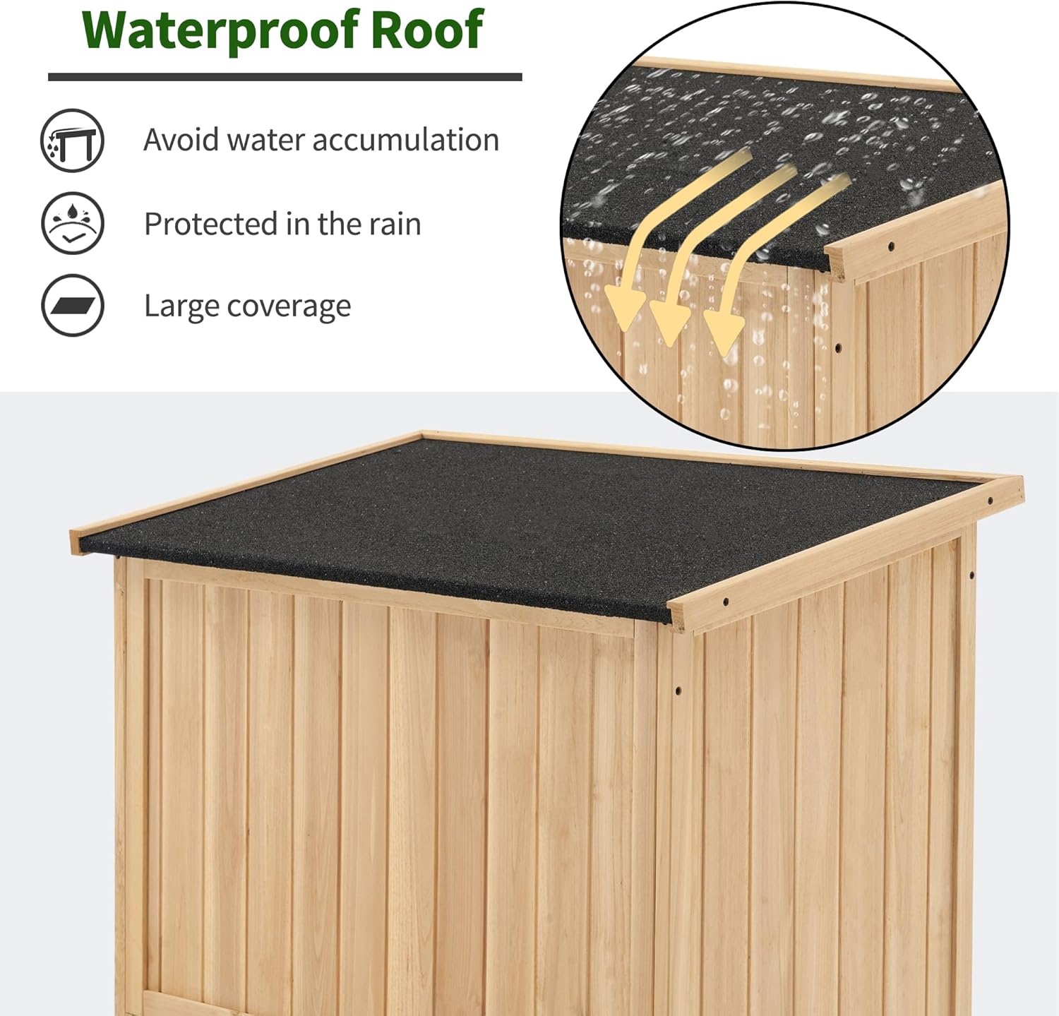 - Fir Solid Wood: The garden shed is made of high-quality pure fir wood, and the exterior has been polished to express a rustic style. Natural Color blends easily with other décor and natural settings.
